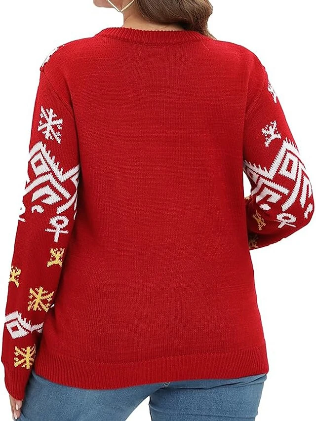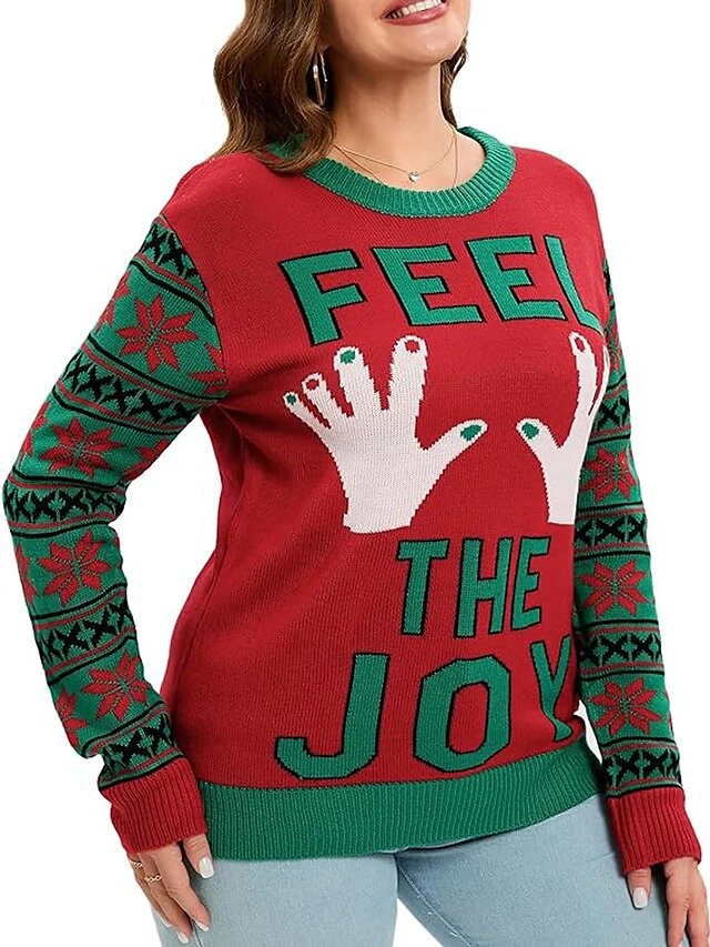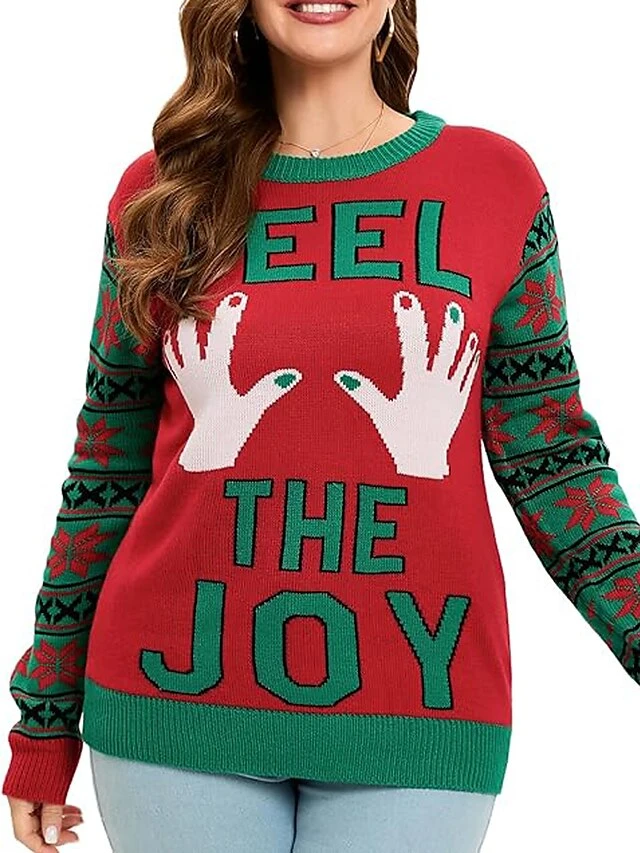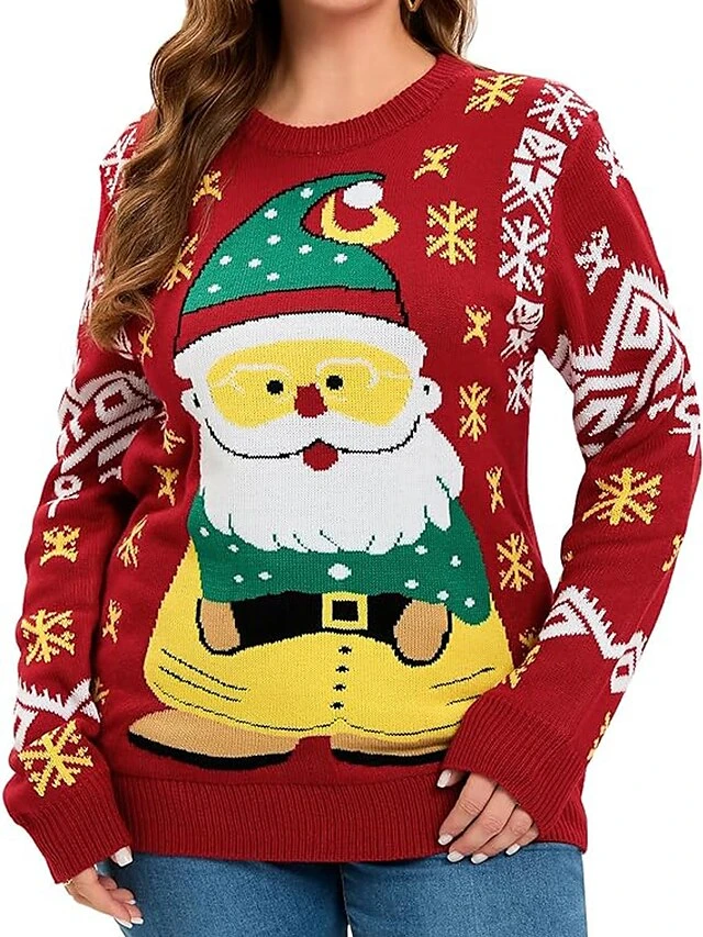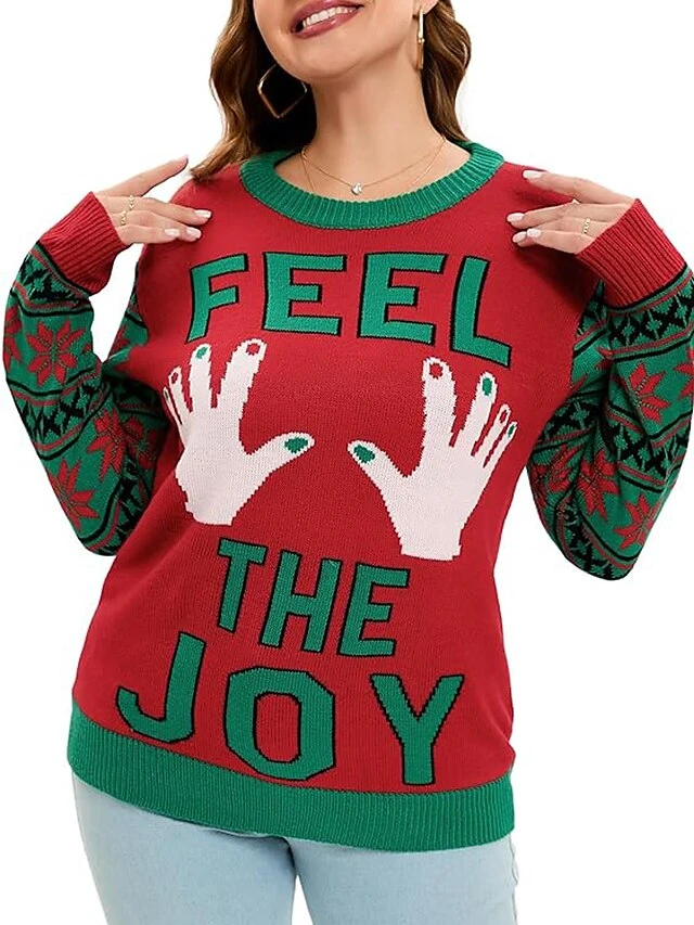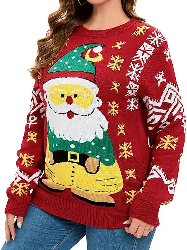 Women’s Ugly Christmas Sweater Pullover Sweater Jumper Crew Neck Ribbed Knit Polyester Knitted Print Fall Winter Regular Outdoor Xmas Holiday Daily Stylish Casual Long Sleeve Print Black Green S