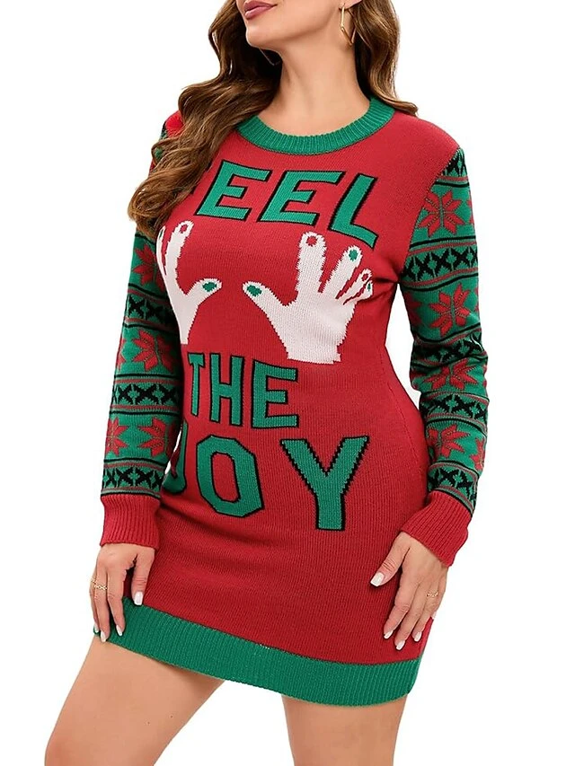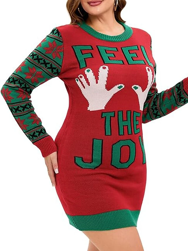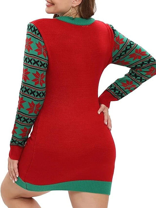 Women’s Ugly Christmas Sweater Pullover Sweater Jumper Crew Neck Ribbed Knit Polyester Knitted Print Fall Winter Regular Outdoor Xmas Holiday Daily Stylish Casual Long Sleeve Santa Claus Wine Red