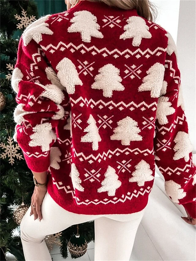 Women’s Ugly Christmas Sweater Pullover Sweater Jumper Crew Neck Ribbed Knit Polyester Oversized Fall Winter Regular Outdoor Christmas Daily Stylish Casual Soft Long Sleeve Christmas Tree Red Green S