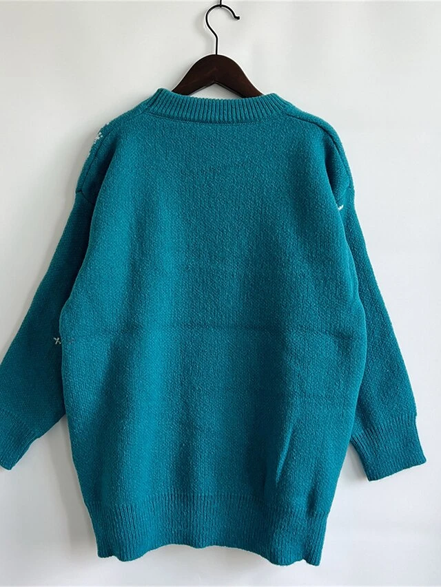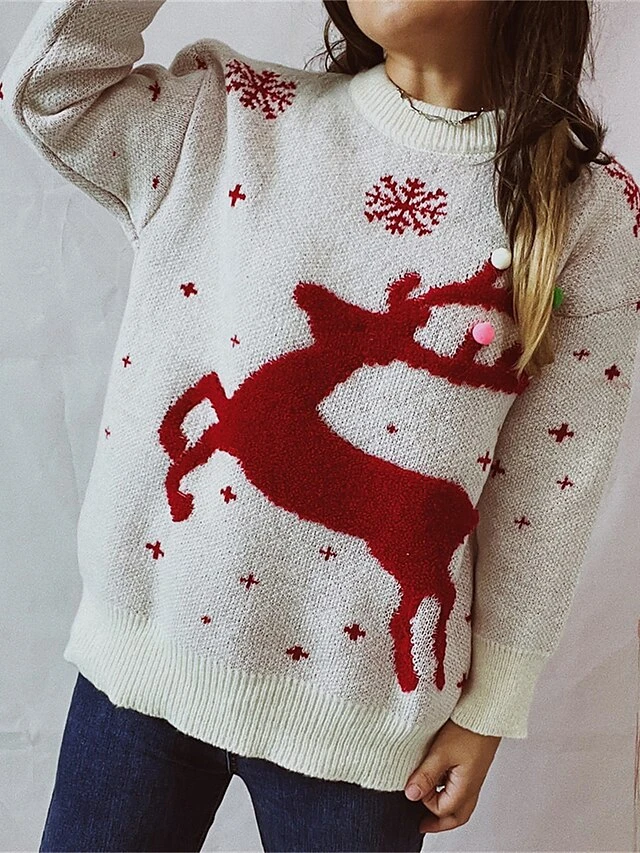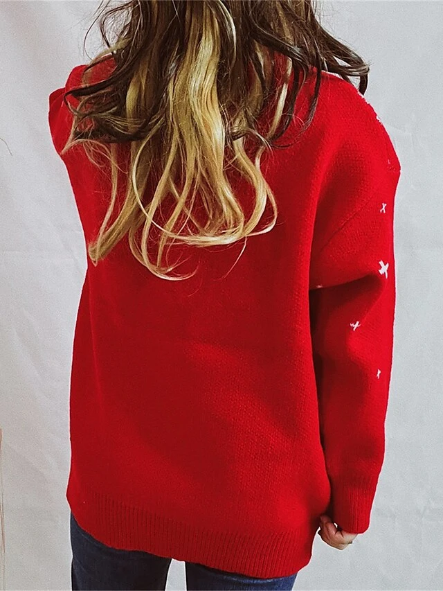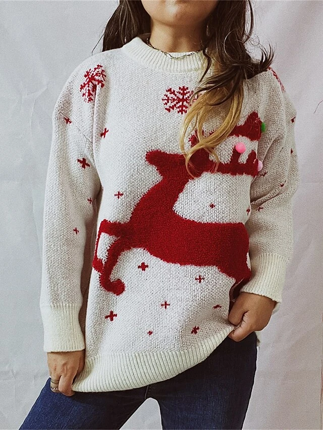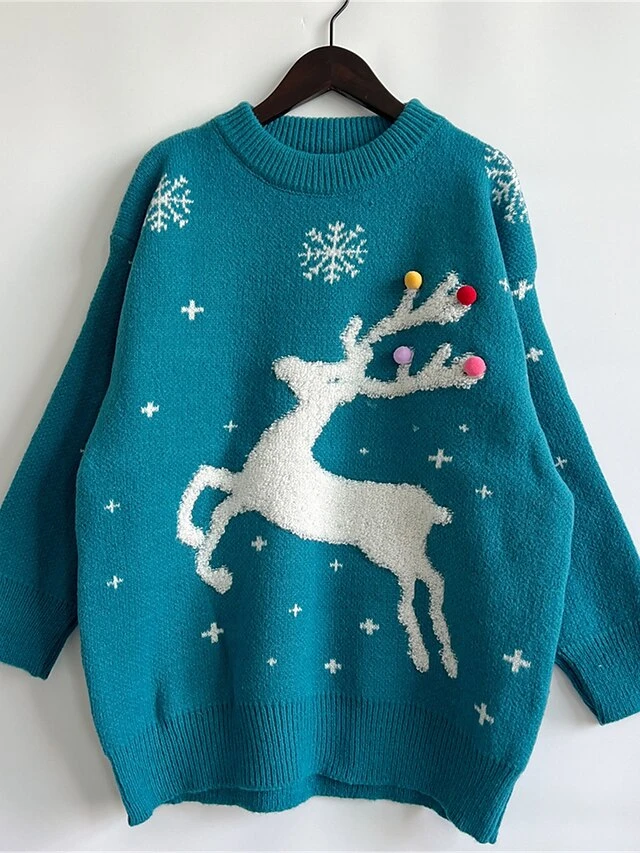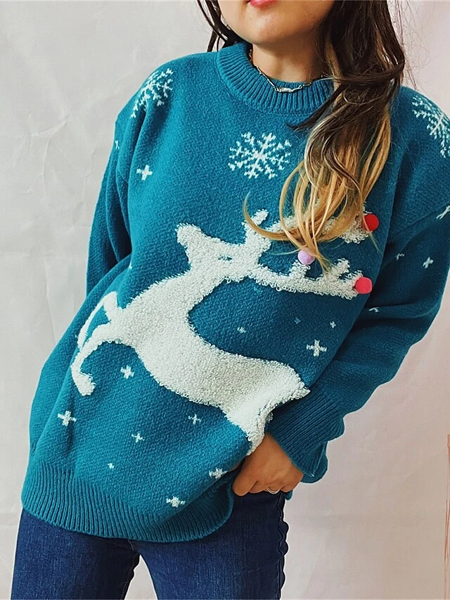 Women’s Ugly Christmas Sweater Pullover Sweater Jumper Crew Neck Ribbed Knit Polyester Oversized Fall Winter Regular Outdoor Christmas Daily Stylish Casual Soft Long Sleeve Elk Snowflake Red Blue