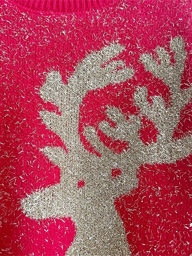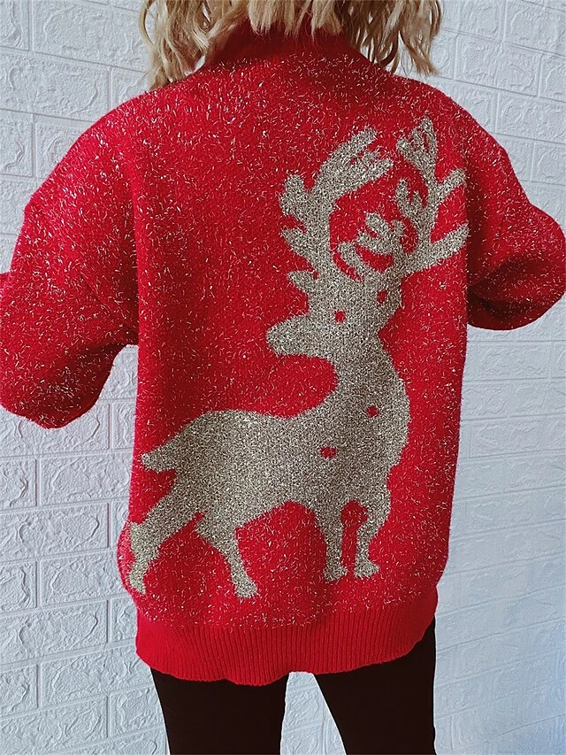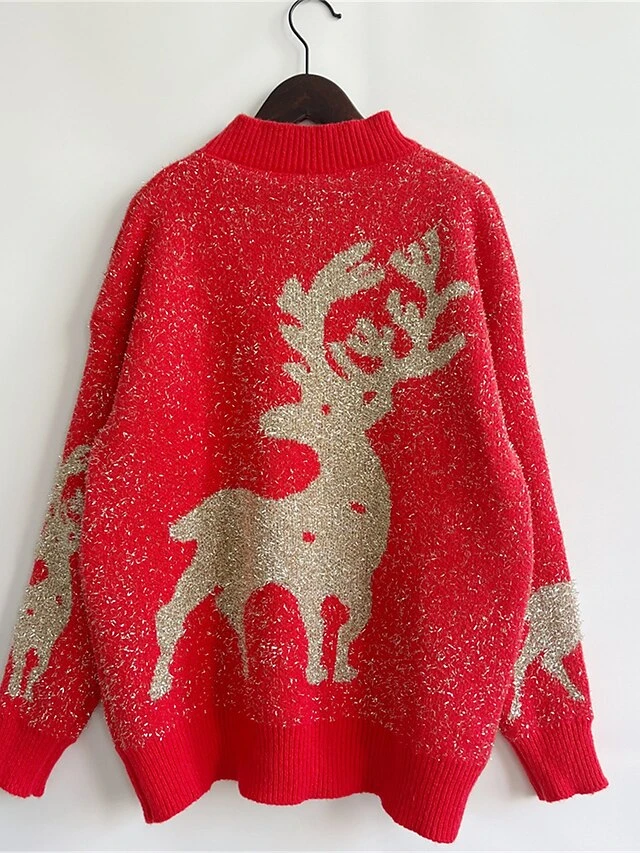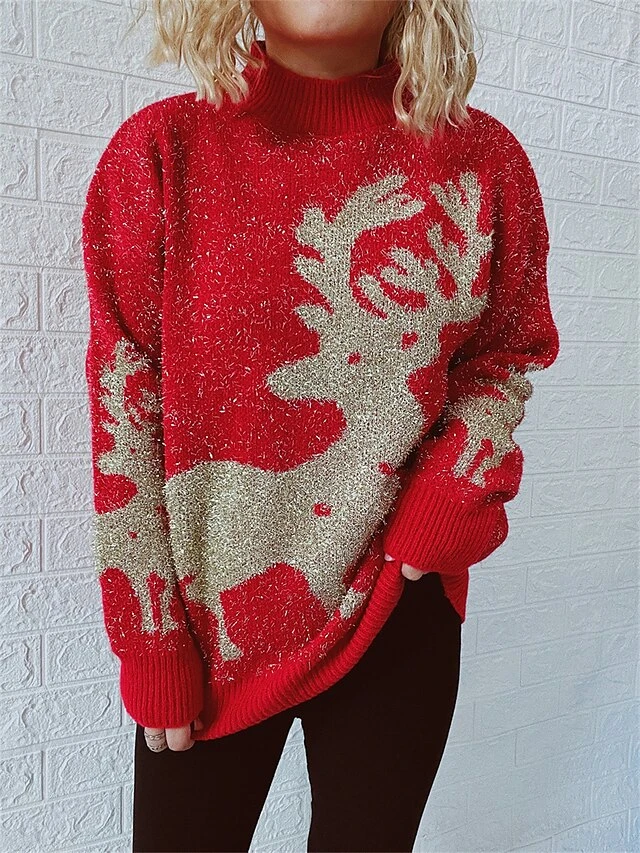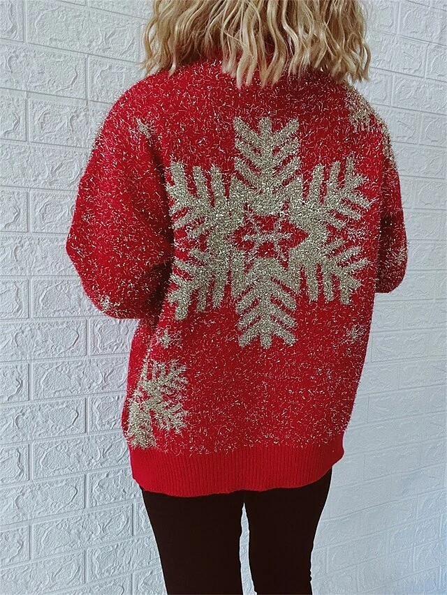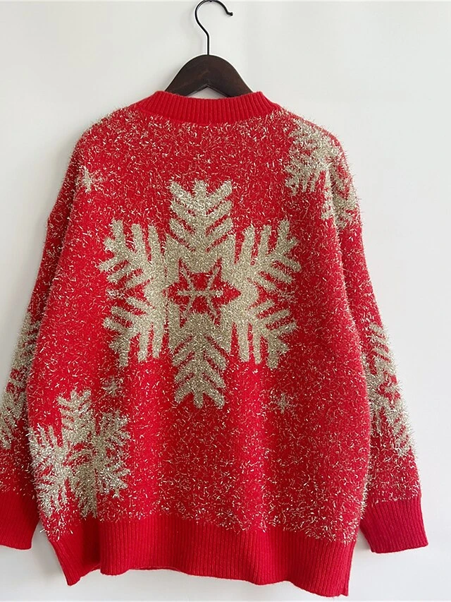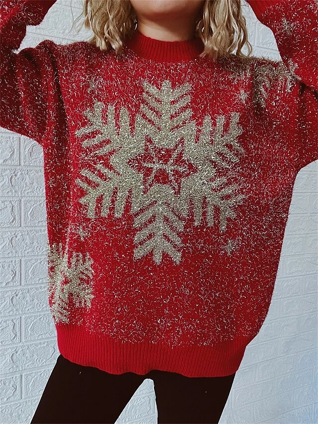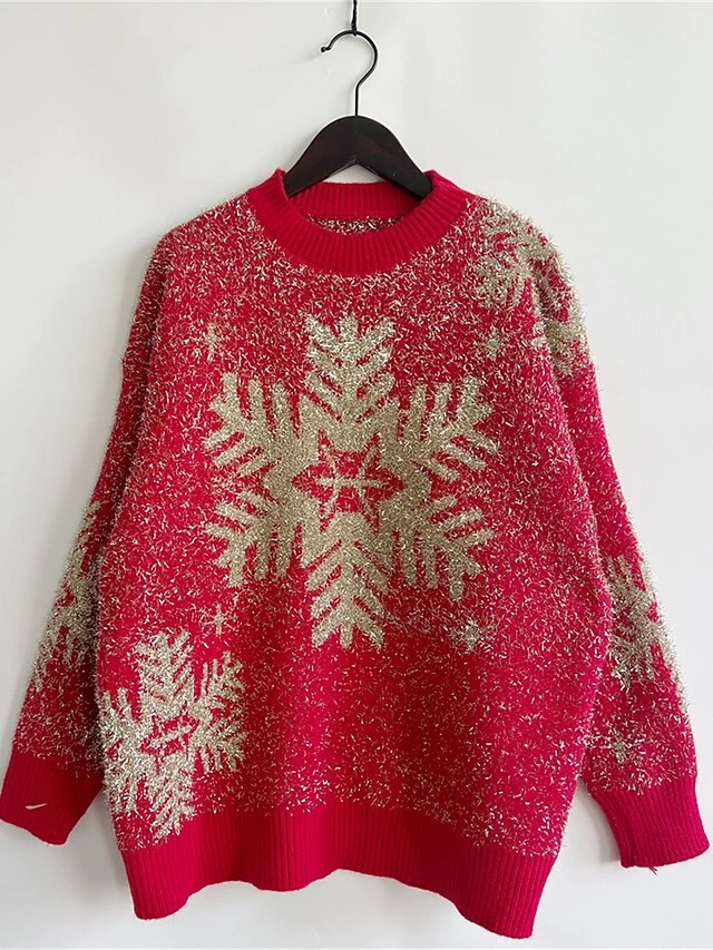 Women’s Ugly Christmas Sweater Pullover Sweater Jumper Crew Neck Ribbed Knit Polyester Oversized Fall Winter Regular Outdoor Christmas Daily Stylish Casual Soft Long Sleeve Elk Snowflake Wine Red S M