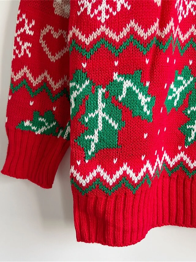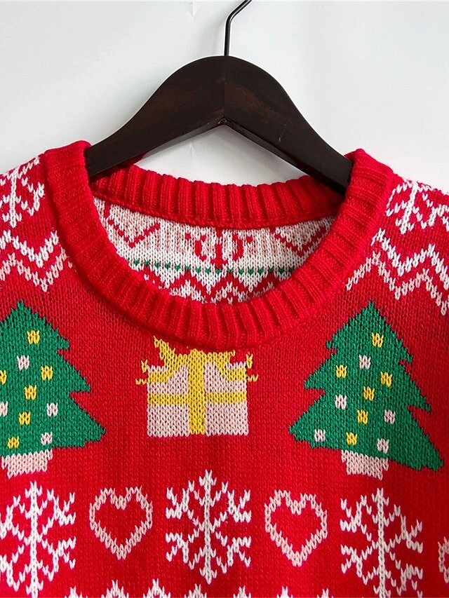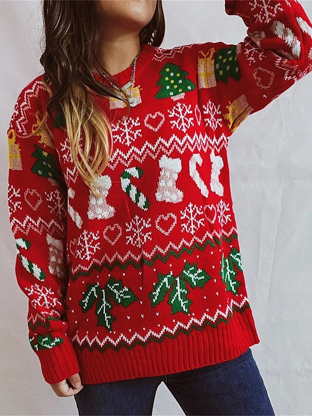 Women’s Ugly Christmas Sweater Pullover Sweater Jumper Crew Neck Ribbed Knit Polyester Oversized Fall Winter Regular Outdoor Christmas Daily Stylish Casual Soft Long Sleeve Heart Christmas Tree