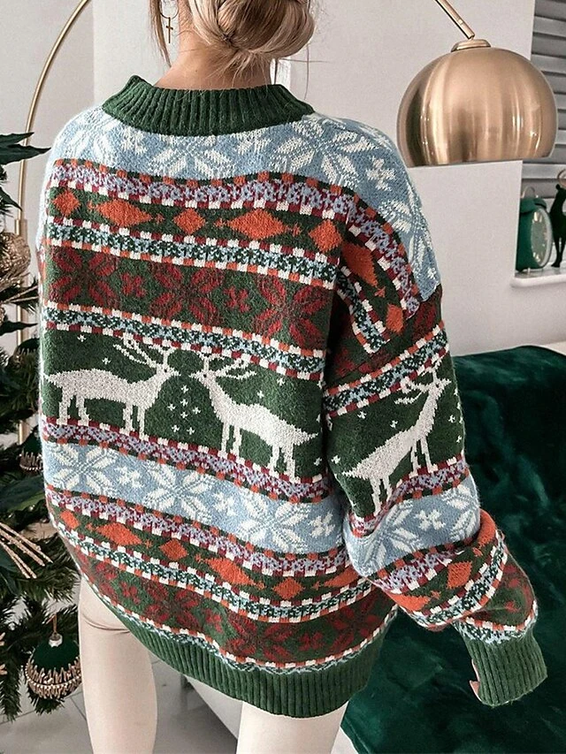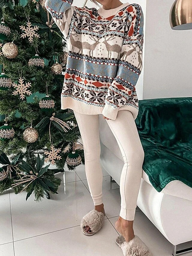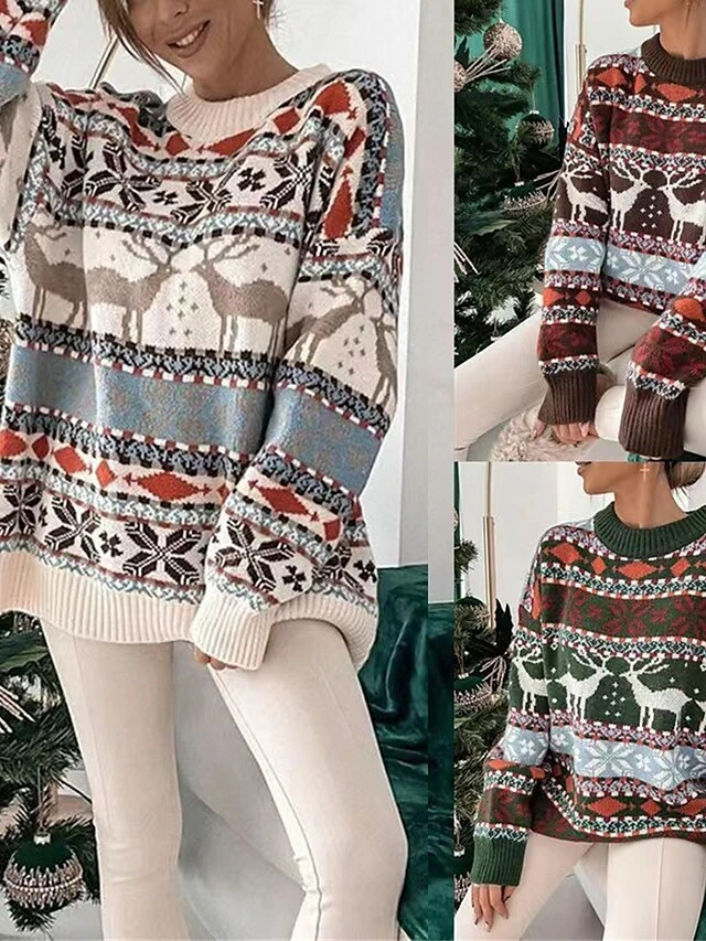 Women’s Ugly Christmas Sweater Pullover Sweater Jumper Crew Neck Ribbed Knit Polyester Oversized Fall Winter Regular Outdoor Xmas Daily Stylish Casual Soft Long Sleeve Geometric Elk Snowflake