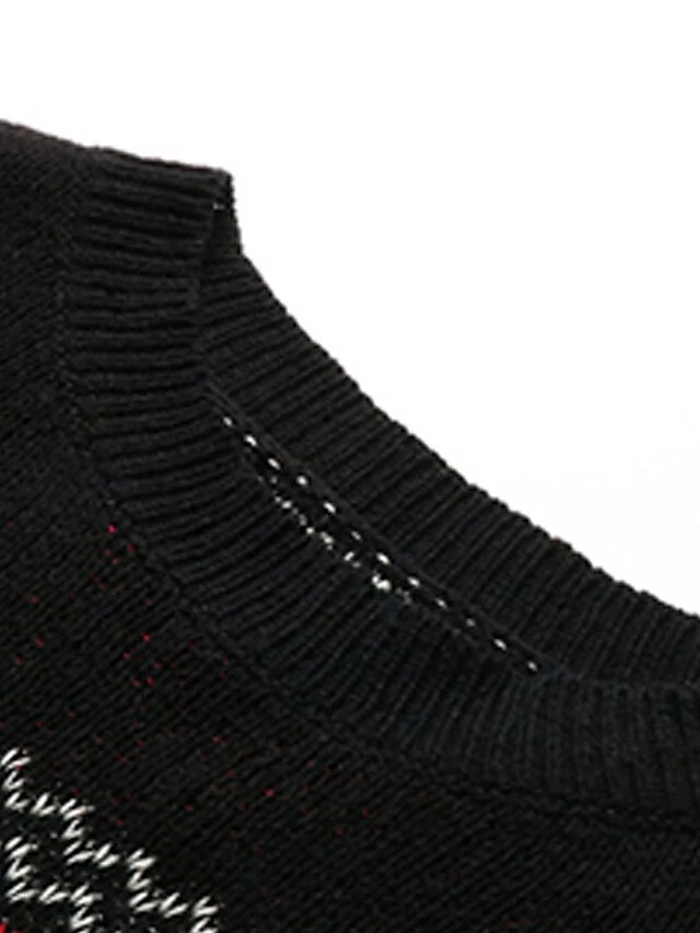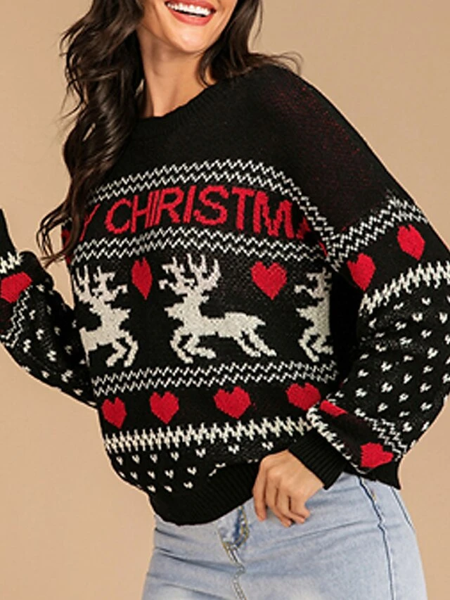 Women’s Ugly Christmas Sweater Pullover Sweater Jumper Crew Neck Ribbed Knit Polyester Oversized Fall Winter Short Xmas Daily Going Out Stylish Casual Soft Long Sleeve Heart Letter Elk Black S M