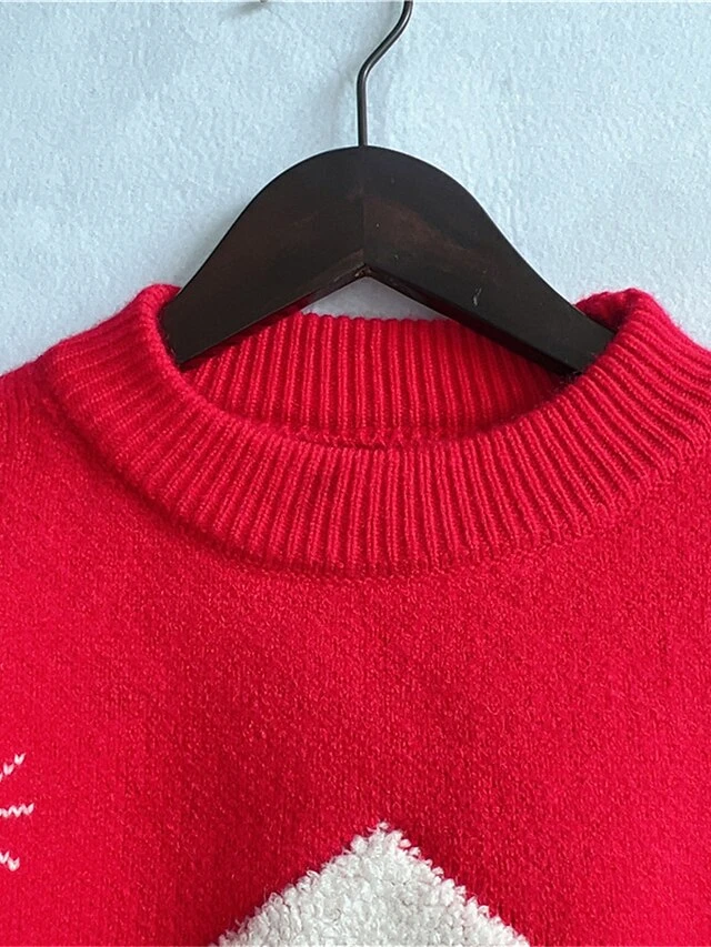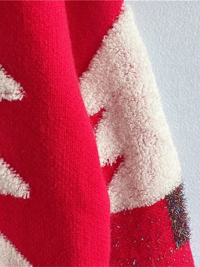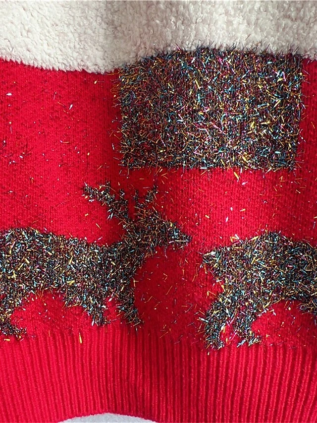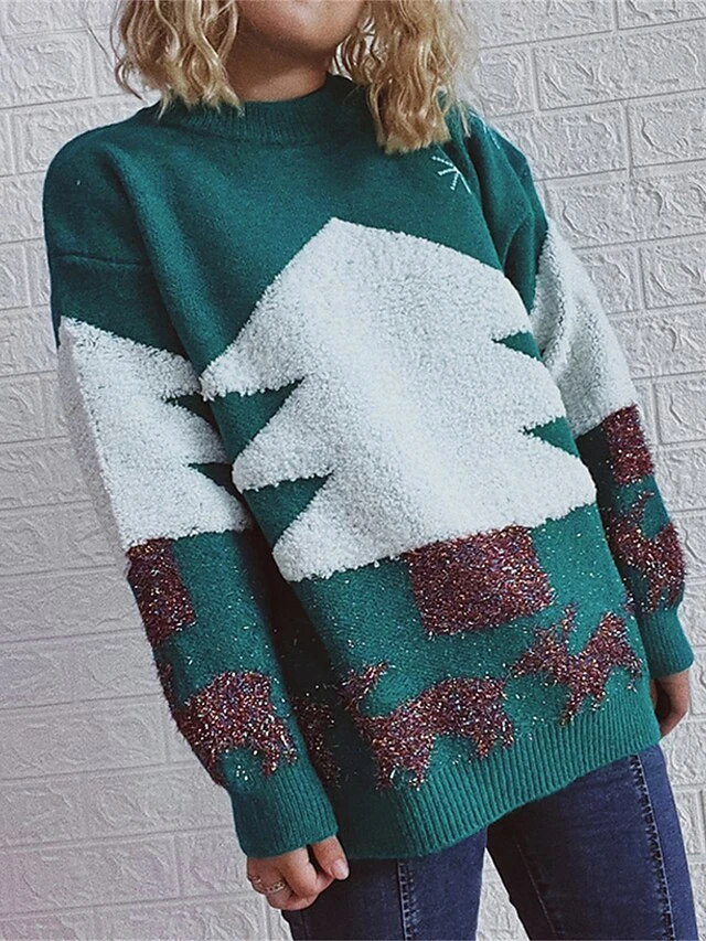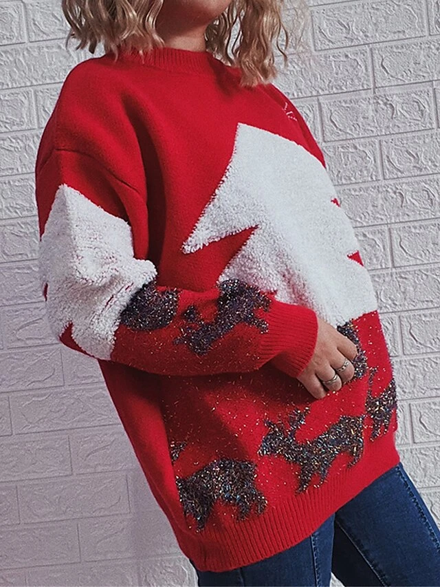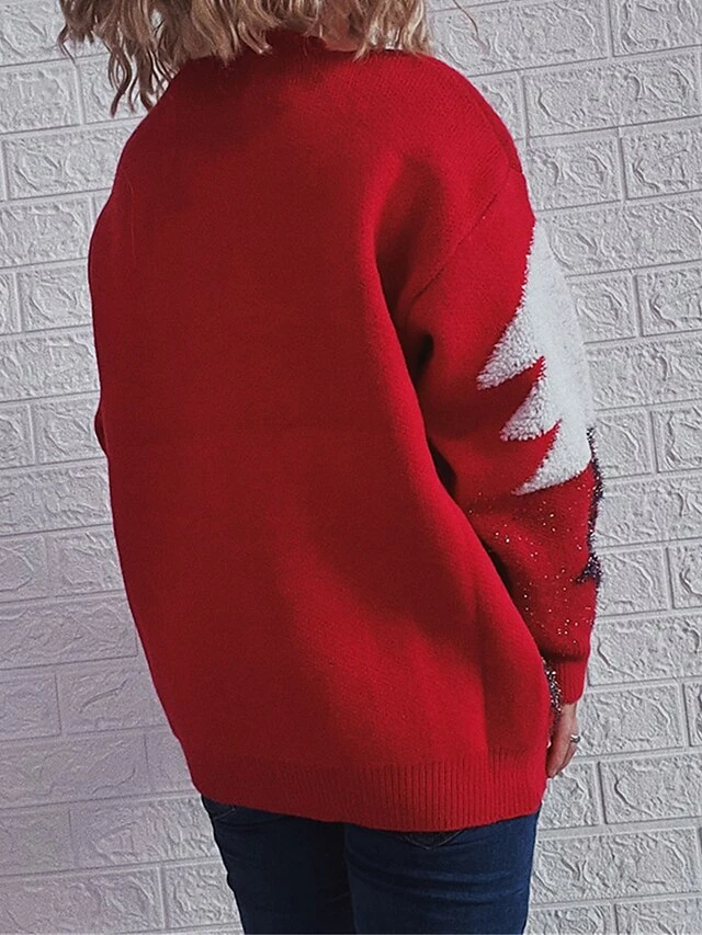 Women’s Ugly Christmas Sweater Pullover Sweater Jumper Crew Neck Ribbed Knit Polyester Patchwork Fall Winter Regular Outdoor Christmas Daily Stylish Casual Soft Long Sleeve Elk Christmas Tree Red
