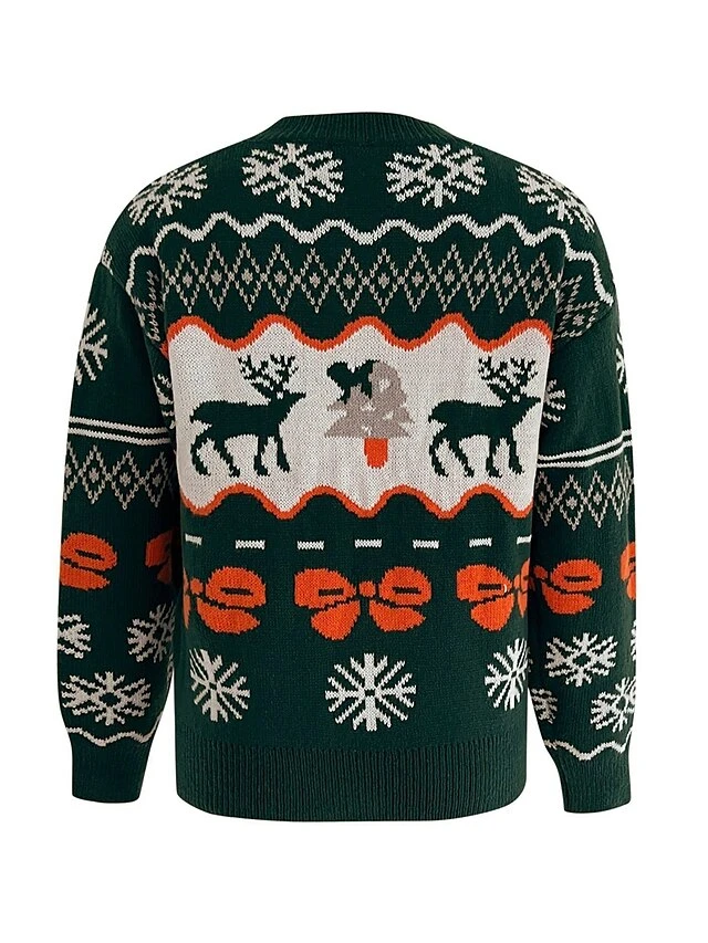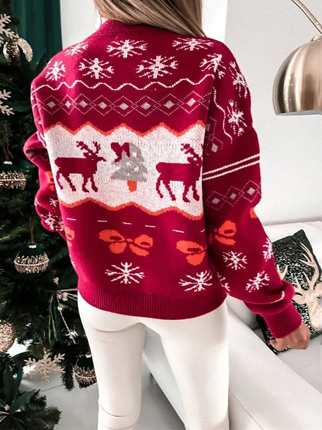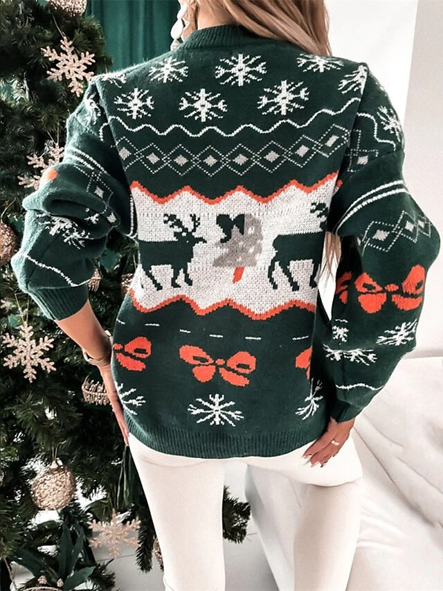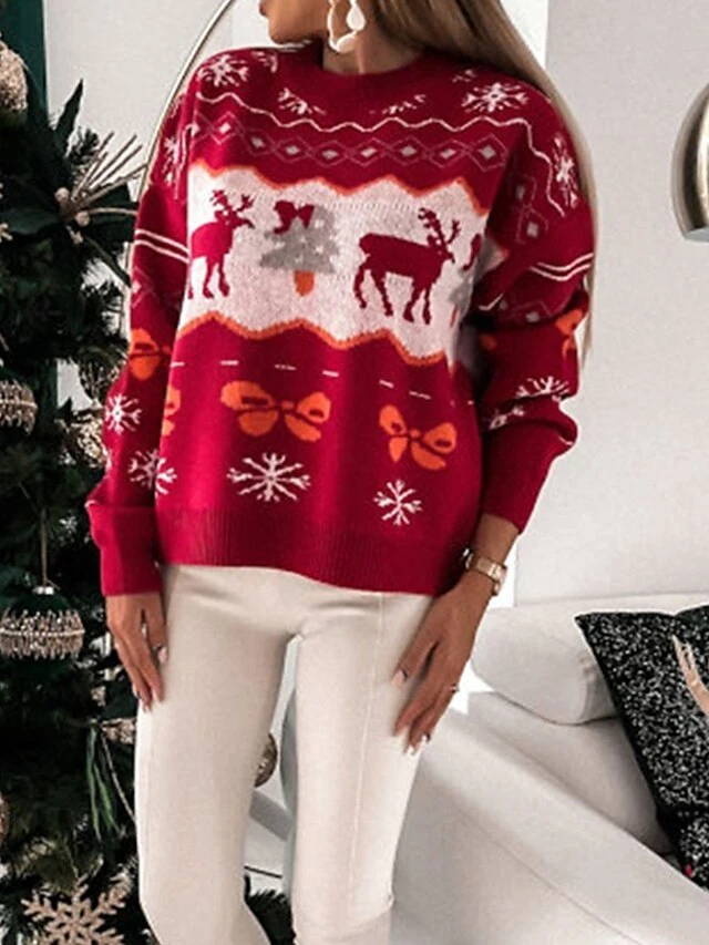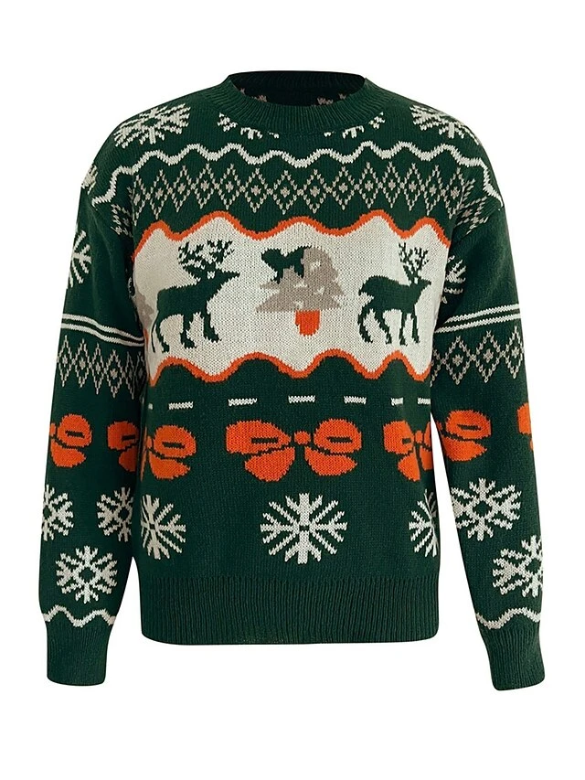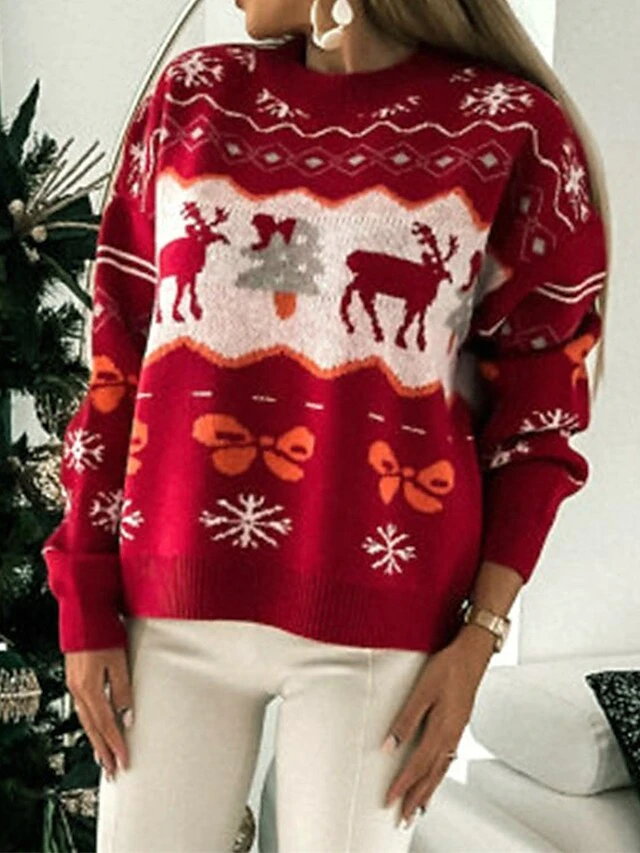 Women’s Ugly Christmas Sweater Pullover Sweater Jumper Crew Neck Ribbed Knit Polyester Patchwork Fall Winter Regular Outdoor Christmas Daily Stylish Casual Soft Long Sleeve Elk Snowflake Red Green S