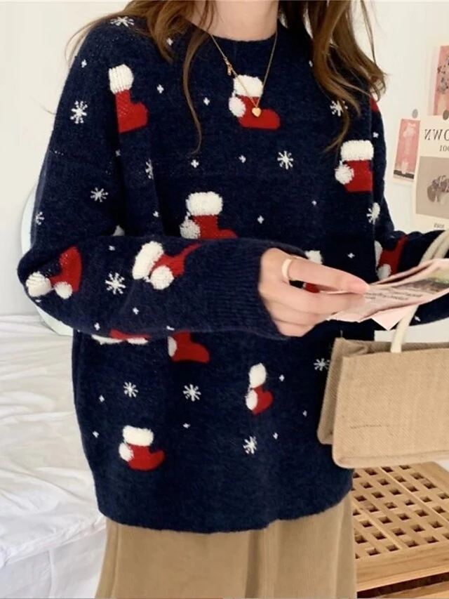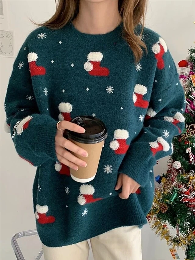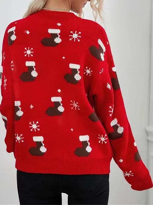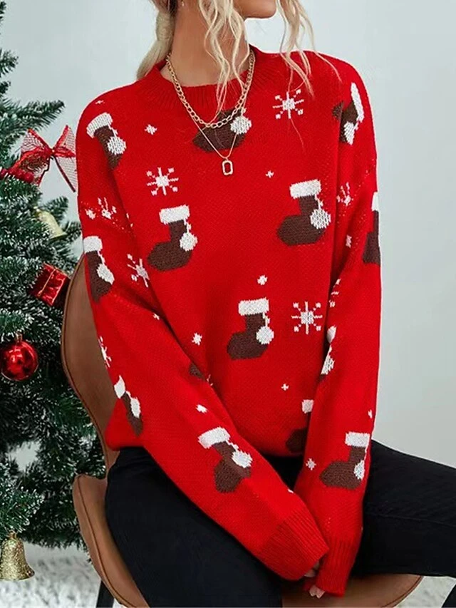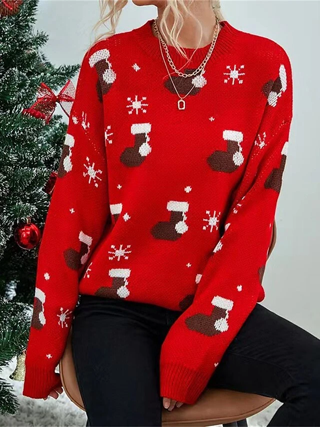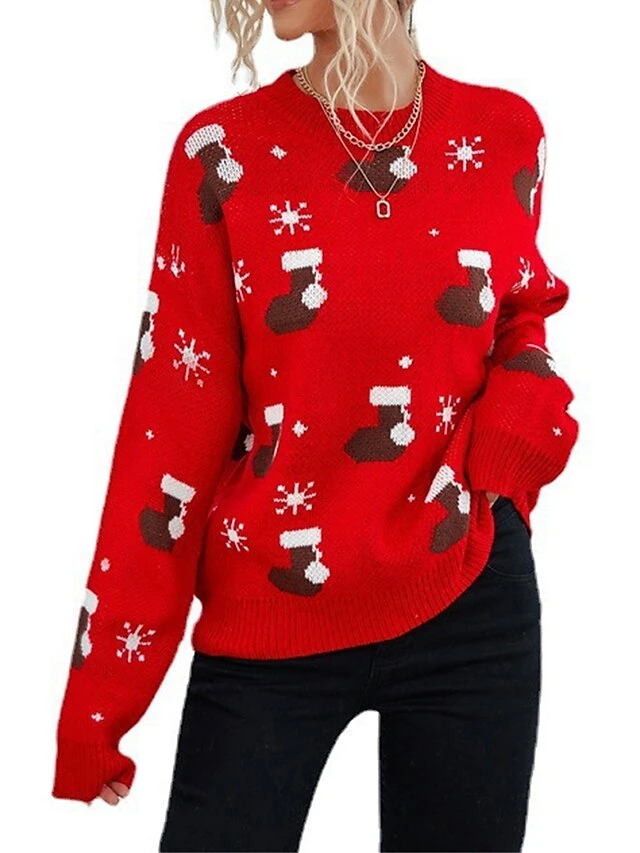 Women’s Ugly Christmas Sweater Pullover Sweater Jumper Crew Neck Ribbed Knit Polyester Patchwork Fall Winter Regular Outdoor Christmas Daily Stylish Casual Soft Long Sleeve Geometric Snowflake Red