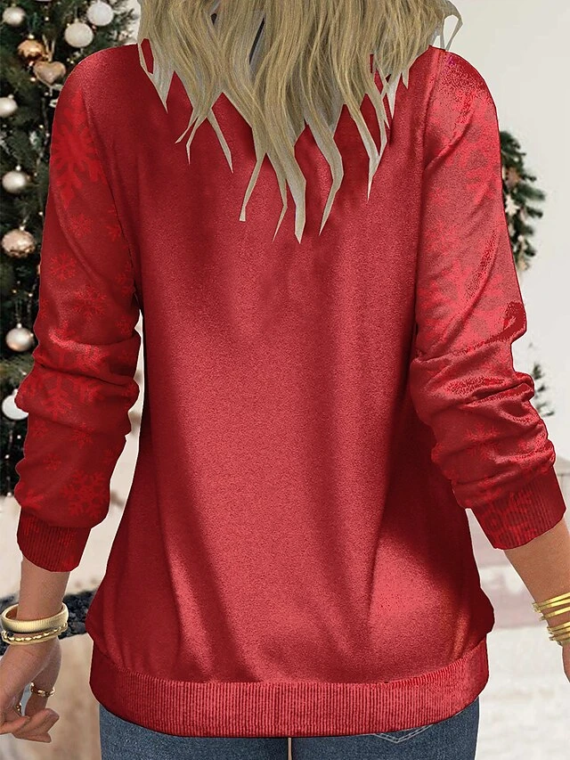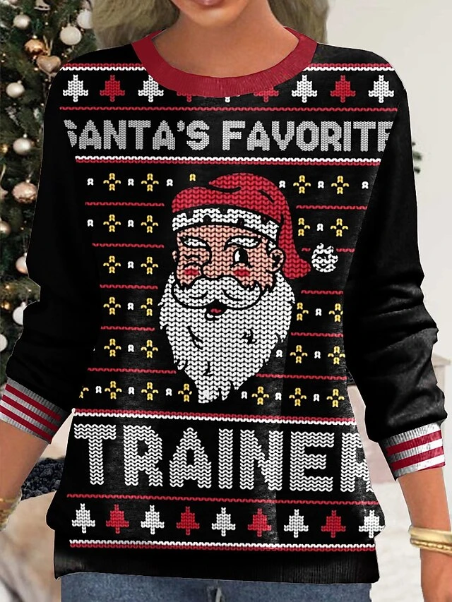 Women’s Ugly Christmas Sweater Pullover Sweater Jumper Crew Neck Ribbed Knit Polyester Print Fall Winter Regular Outdoor Xmas Holiday Stylish Casual Soft Long Sleeve Santa Claus Print Black Red