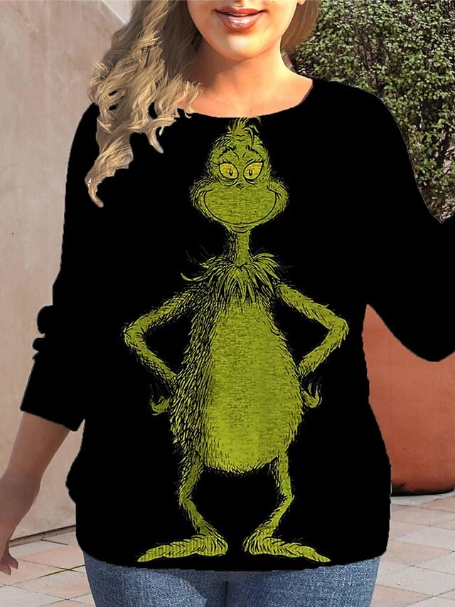 Women’s Ugly Christmas Sweater Pullover Sweater Jumper Crew Neck Ribbed Knit Polyester Print Fall Winter Regular Xmas Daily Going Out Stylish Plus Size Casual Long Sleeve Print Navy Blue Green