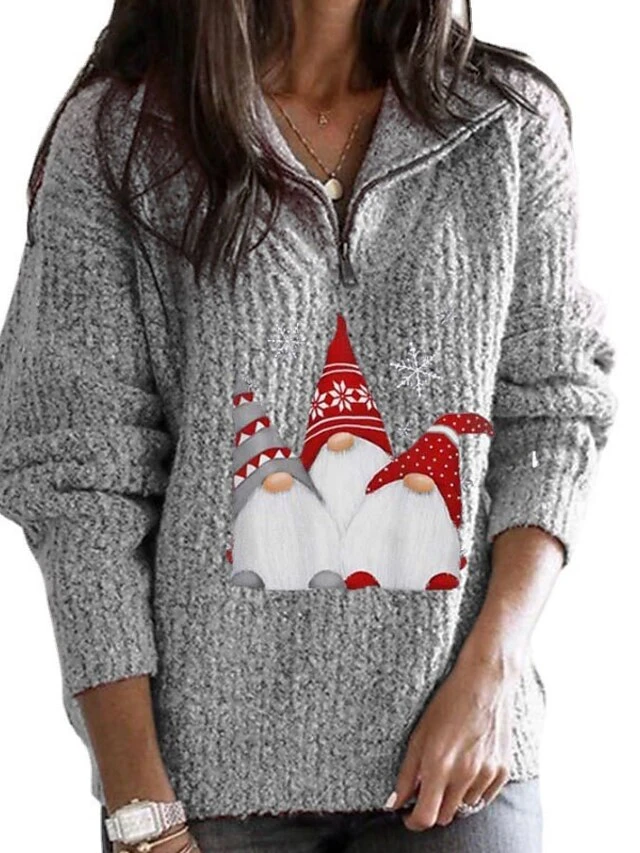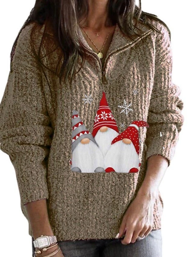 Women’s Ugly Christmas Sweater Pullover Sweater Jumper Shirt Collar Half Zip Crochet Knit Polyester Zipper Knitted Fall Winter Xmas Holiday Stylish Casual Soft Long Sleeve Geometric Black Pink