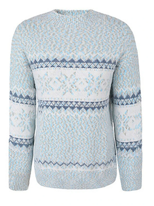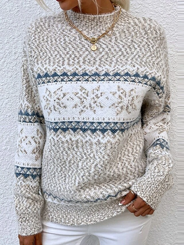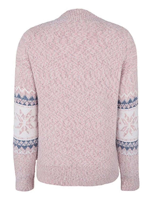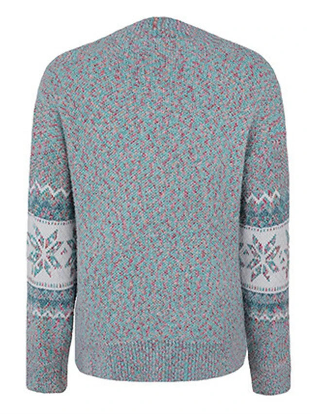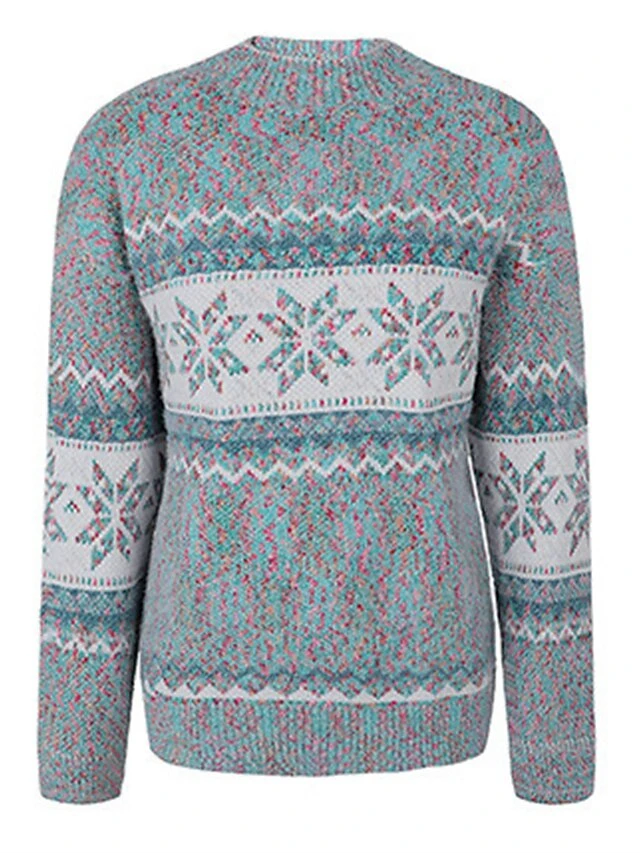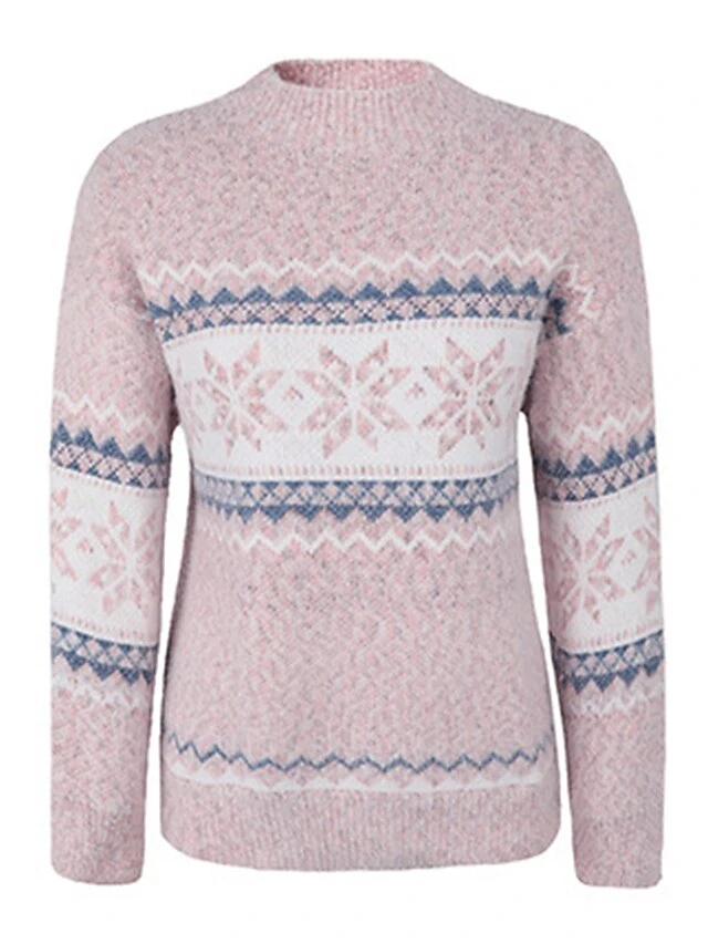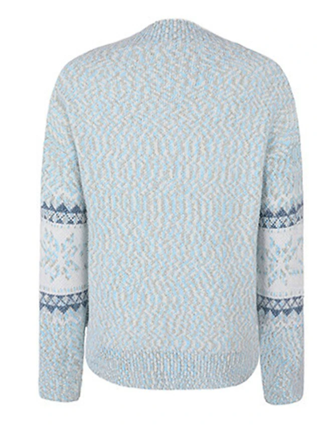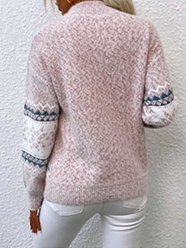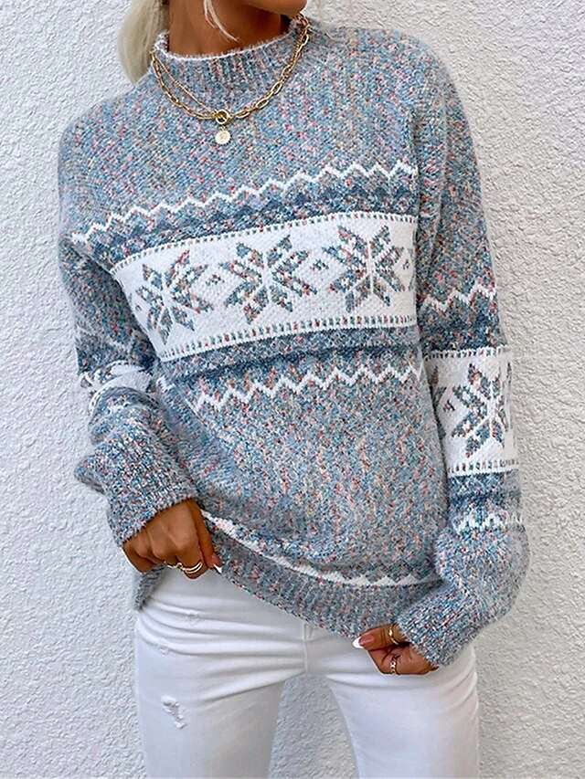 Women’s Ugly Christmas Sweater Pullover Sweater Jumper Stand Collar Ribbed Knit Polyester Patchwork Fall Winter Regular Outdoor Christmas Daily Stylish Casual Soft Long Sleeve Snowflake Pink Blue
