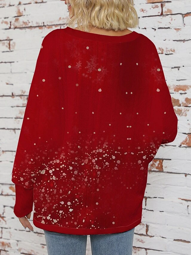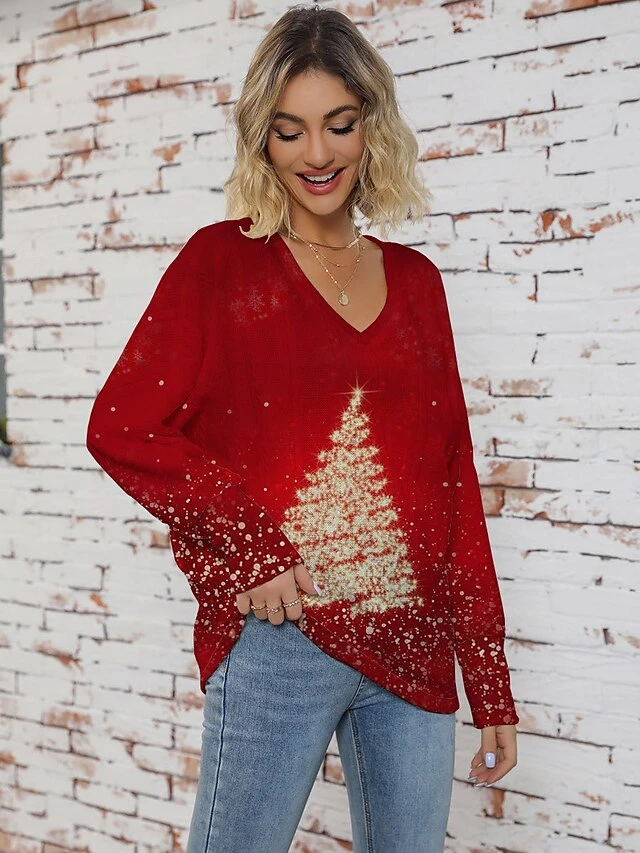 Women’s Ugly Christmas Sweater Pullover Sweater Jumper V Neck Ribbed Knit Polyester Knitted Print Fall Winter Regular Outdoor Christmas Holiday Daily Stylish Casual Long Sleeve Christmas Tree Wine Red
