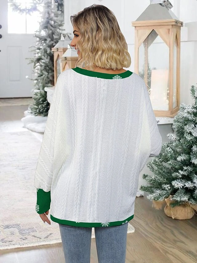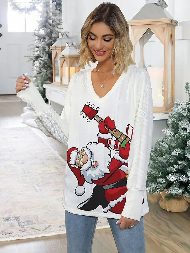Women’s Ugly Christmas Sweater Pullover Sweater Jumper V Neck Ribbed Knit Polyester Knitted Print Fall Winter Regular Outdoor Christmas Holiday Daily Stylish Casual Long Sleeve Santa Claus Elk Wine