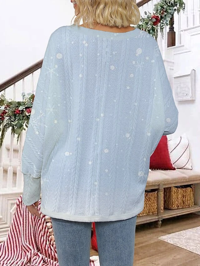 Women’s Ugly Christmas Sweater Pullover Sweater Jumper V Neck Ribbed Knit Polyester Knitted Print Fall Winter Regular Outdoor Christmas Holiday Daily Stylish Casual Long Sleeve Santa Claus Royal Blue