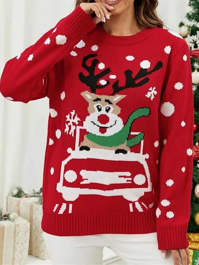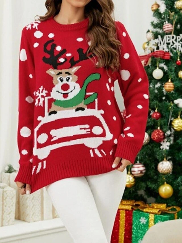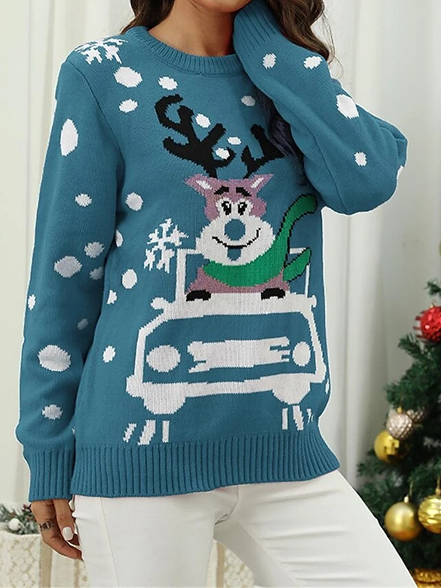 Women’s Ugly Christmas Sweater Pullover Sweater Jumper V Neck Ribbed Knit Polyester Knitted Print Fall Winter Regular Outdoor Xmas Holiday Daily Stylish Casual Long Sleeve Santa Claus Black S M L