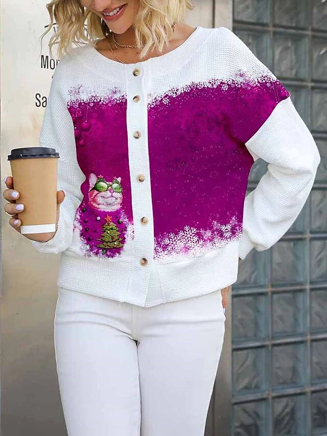 Women’s Ugly Christmas Sweater Pullover Sweater Jumper V Neck Ribbed Knit Polyester Knitted Print Fall Winter Regular Outdoor Xmas Holiday Daily Stylish Casual Long Sleeve Santa Claus Christmas