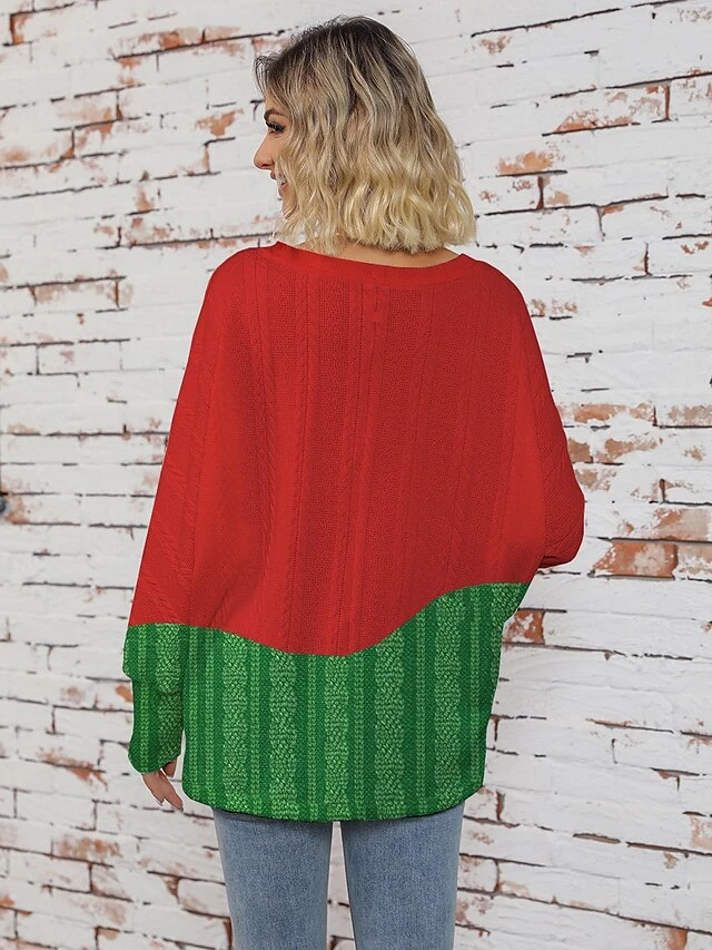 Women’s Ugly Christmas Sweater Pullover Sweater Jumper V Neck Ribbed Knit Polyester Knitted Print Fall Winter Regular Outdoor Xmas Holiday Daily Stylish Casual Long Sleeve Santa Claus Wine Red S