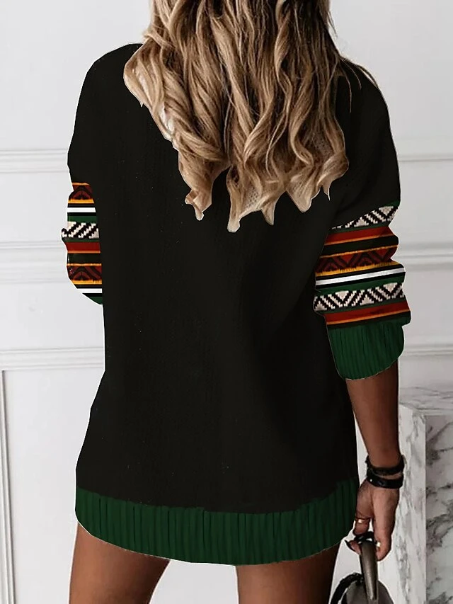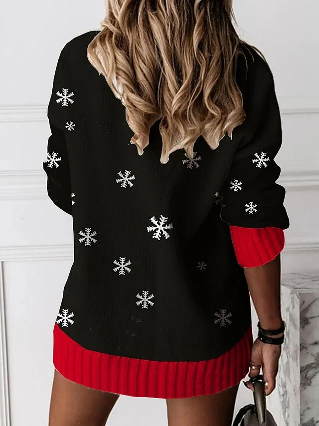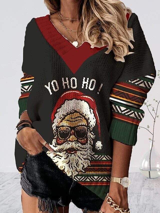 Women’s Ugly Xmas Sweater Pullover Sweater Jumper Crochet Knit Regular Print Santa Claus V Neck Stylish Casual Christmas Drop Shoulder Fall Winter Black Wine S M L