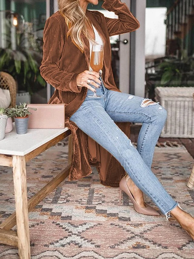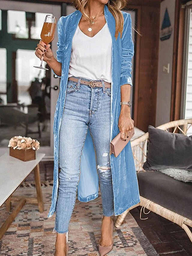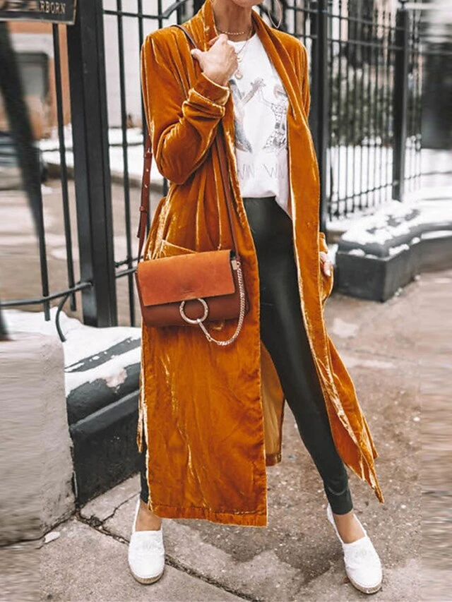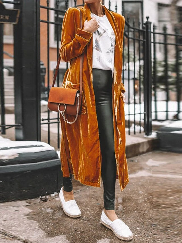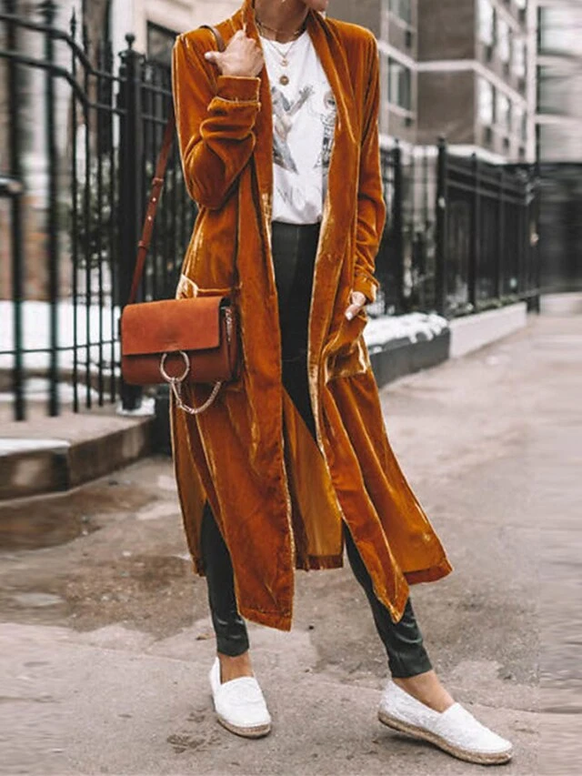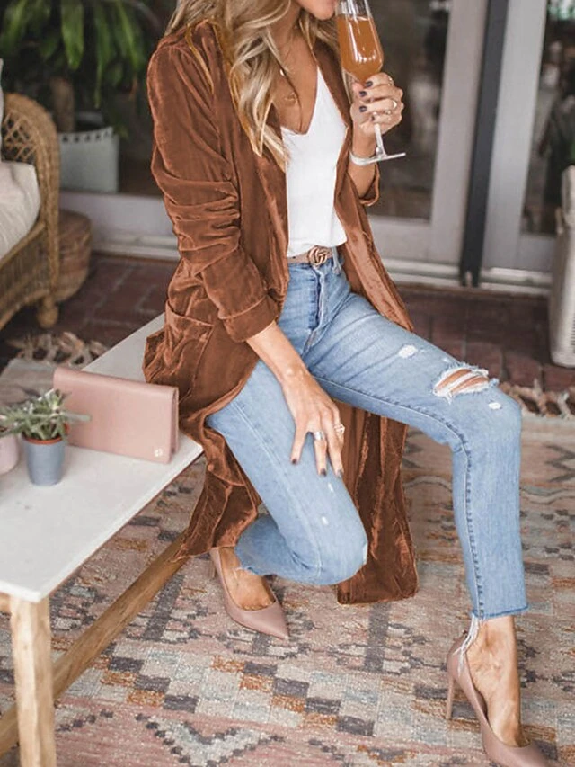 Women’s Velvet Blazer Long Trench Coat Christmas Party Xmas Outfit Open Front Windproof Warm Winter Coat Fall Stylish Modern Casual Jacket Long Sleeve Plain Oversize Black Yellow Red