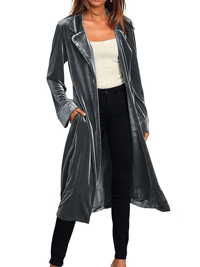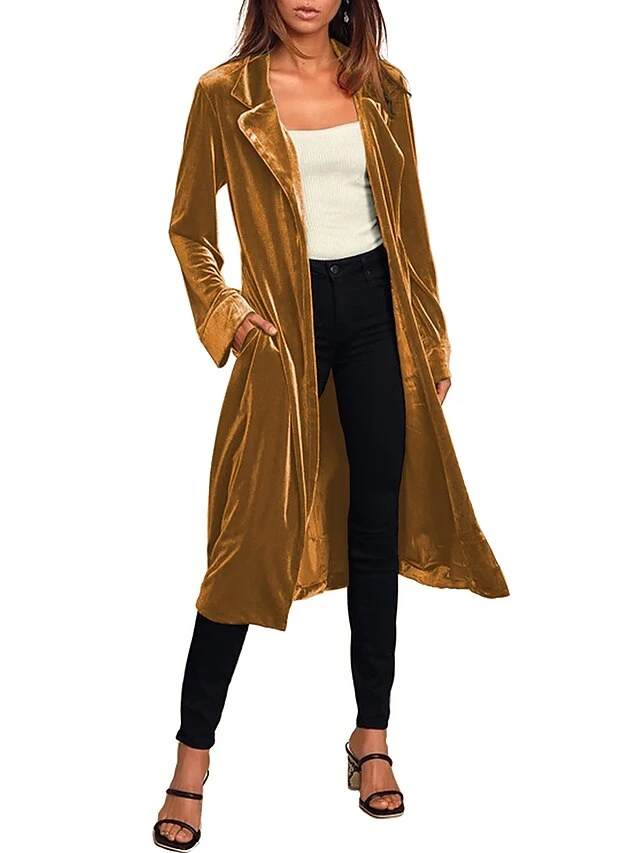 Women’s Velvet Blazer Long Trench Coat Party Christmas Overcoat With Belt Open Front Halloween Xmas Cardigan Jacket Warm Stylish Casual Street Jacket Long Sleeve With Pockets Claret Black Yellow