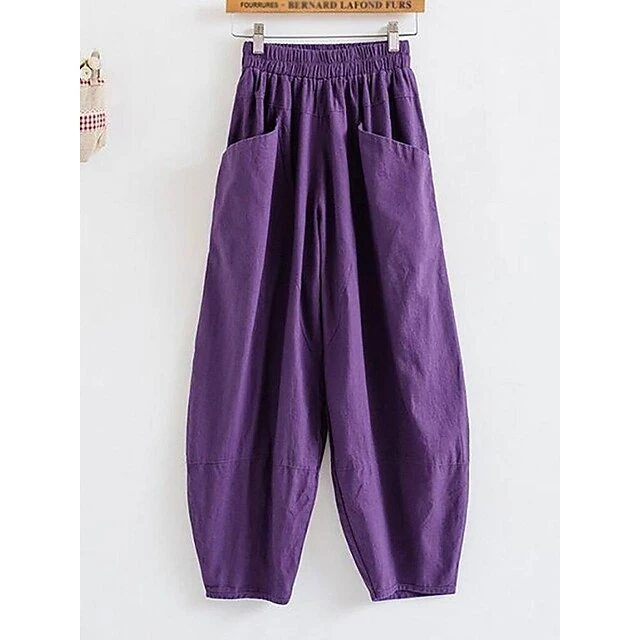 Women’s Wide Leg Chinos Pants Trousers Ankle-Length Side Pockets Baggy Micro-elastic Mid Waist Fashion Xmas Christmas Casual Black Purple M L