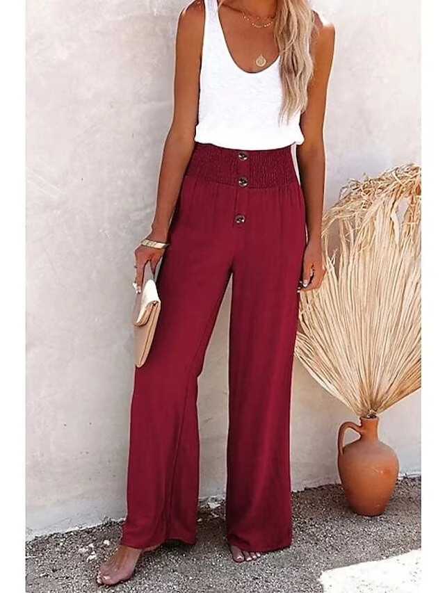 Women’s Wide Leg Pants Trousers Full Length Cotton And Linen Pleated Micro-elastic High Waist Vacation Xmas Streetwear Christmas Street Wine Black S M Winter Autumn / Fall