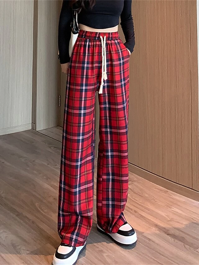 Women’s Wide Leg Pants Trousers Full Length Fashion Streetwear Christmas Street Red Green S M Fall Winter