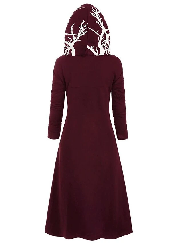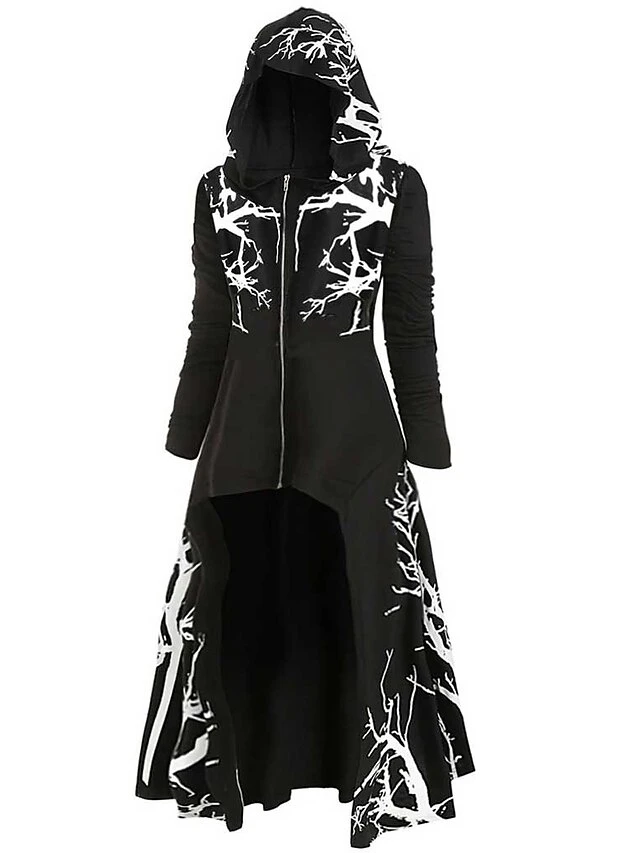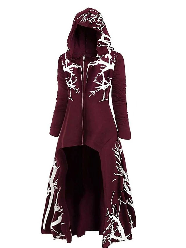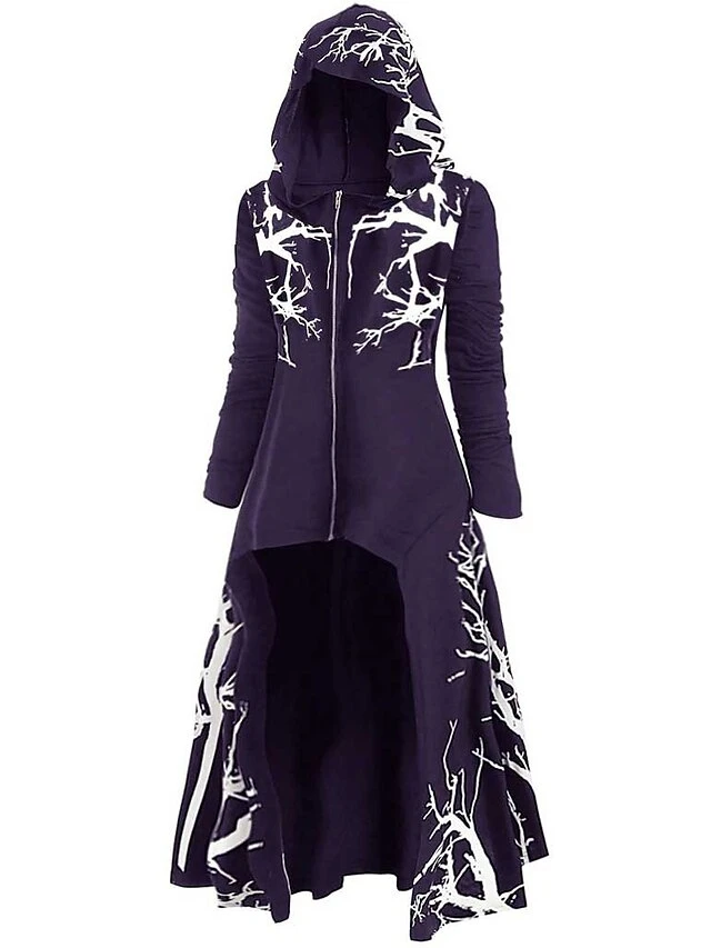 Women’s Winter Coat Christmas Long Coat Zip Up Overcoat Halloween Warm Windproof Hooded Jacket Fall Black Blue Purple L XL XXL 3XL 4XL