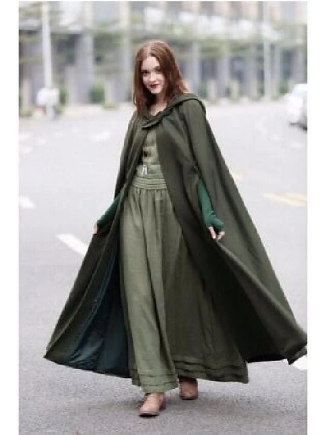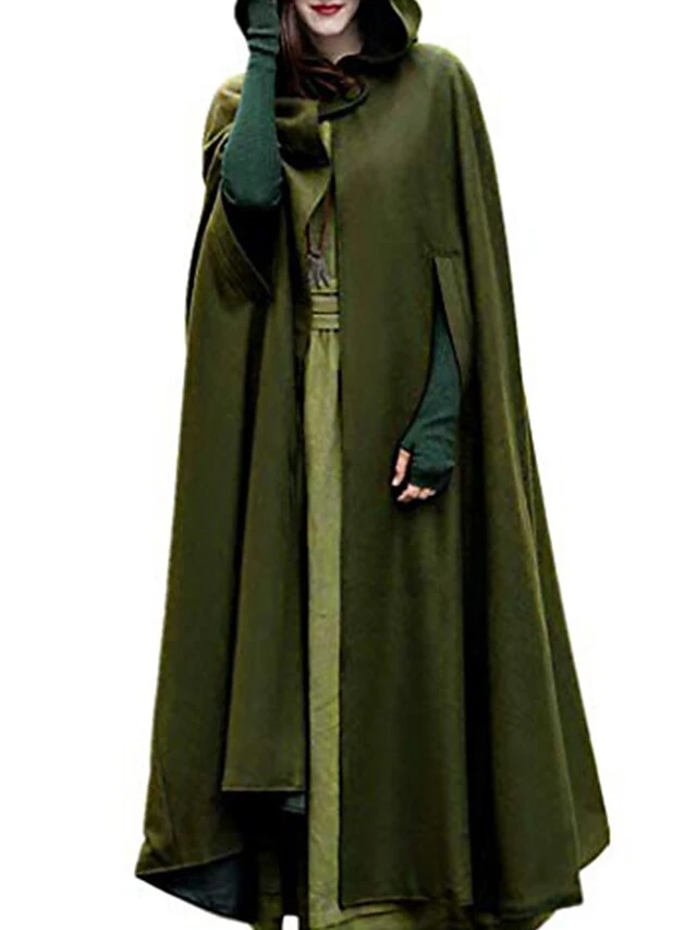 Women’s Winter Coat Cloak / Halloween Xmas Capes Long Layered Coat Warm Windproof Overcoat Fall Single Breasted Hooded Coat Green Black Blue Gray Christmas Crewneck S M L XL / Winter