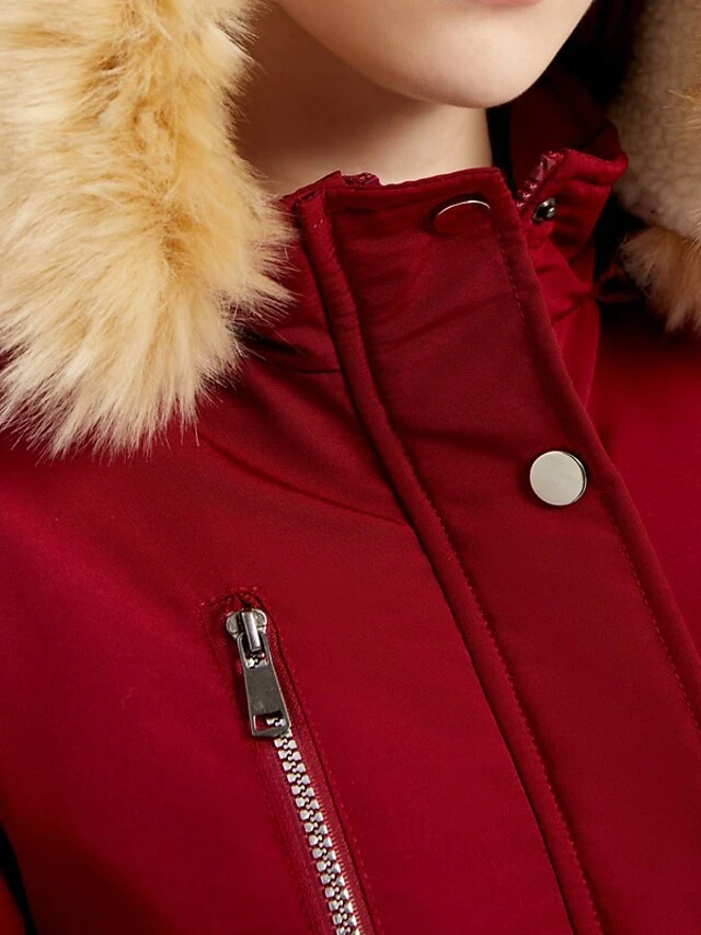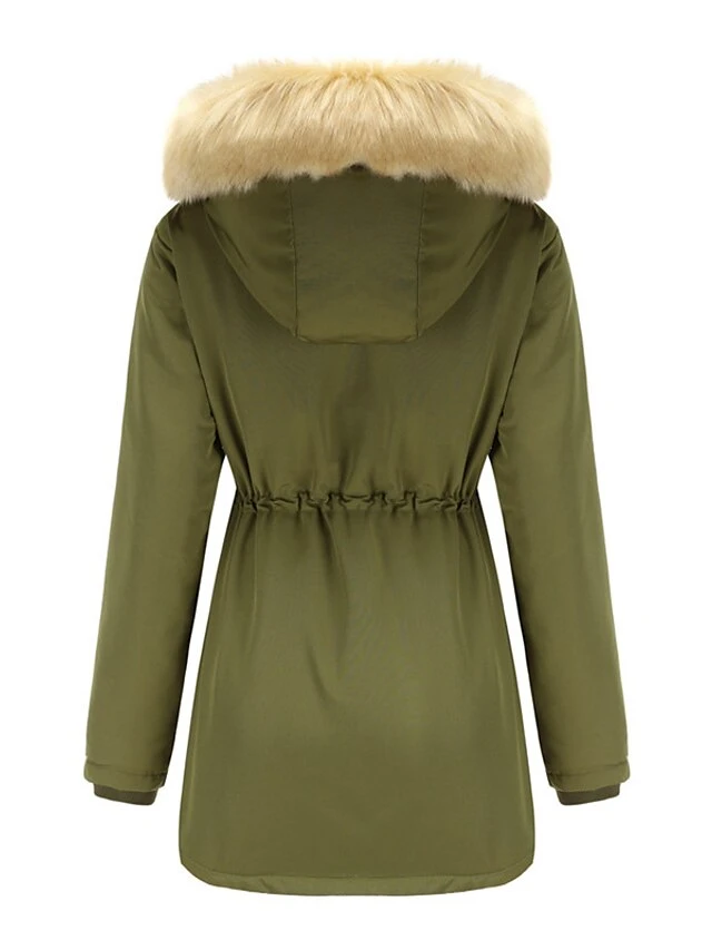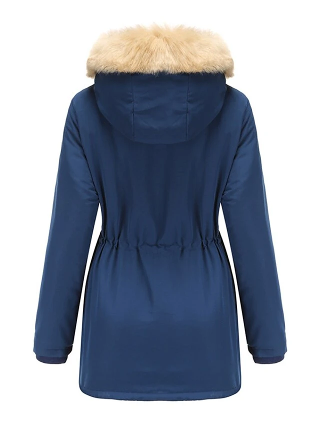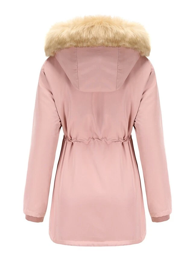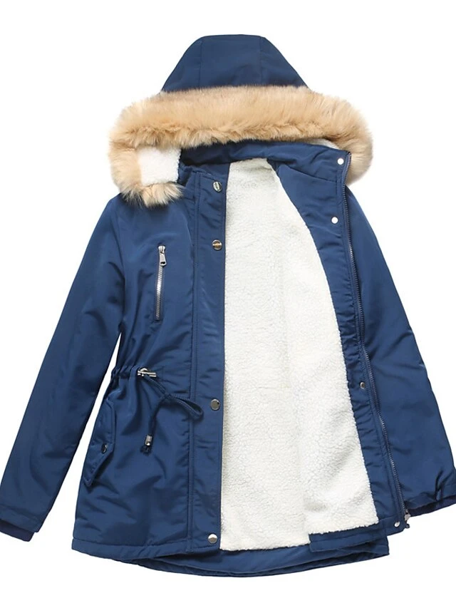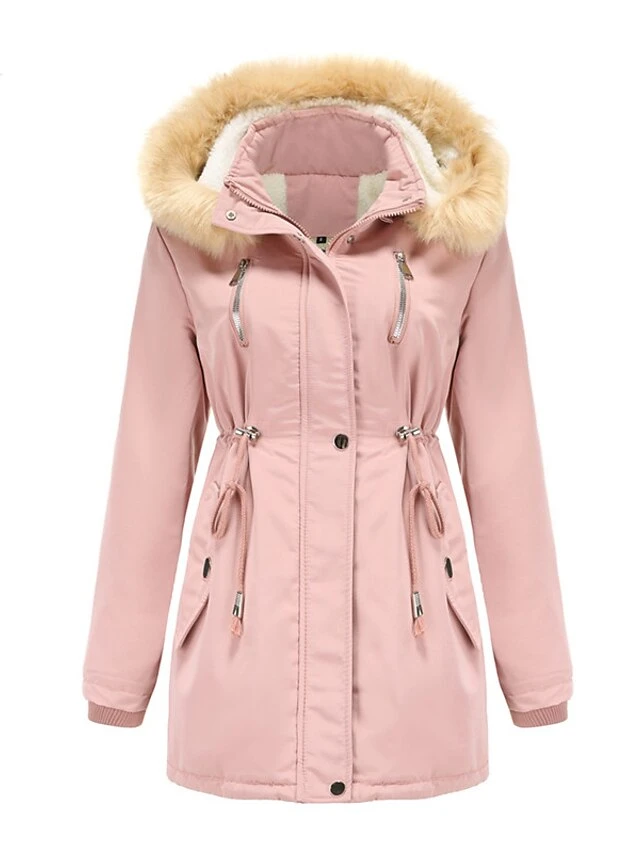 Women’s Winter Coat Jacket Parka Warm Breathable Outdoor Christmas Daily Wear Vacation Xmas Pocket Fur Collar Fleece Lined Zipper Hoodie Elegant Lady Comfortable Solid Color Regular Fit Outerwear