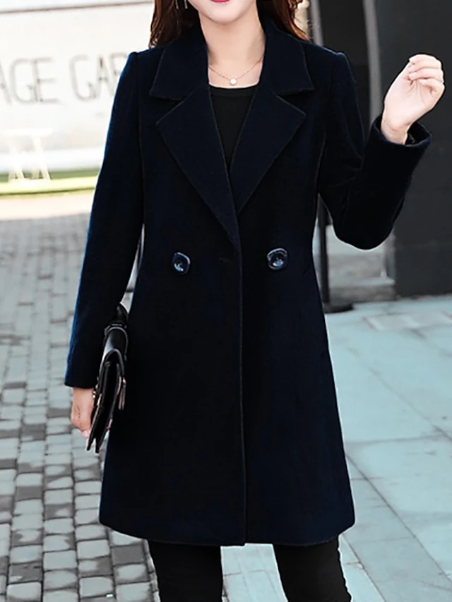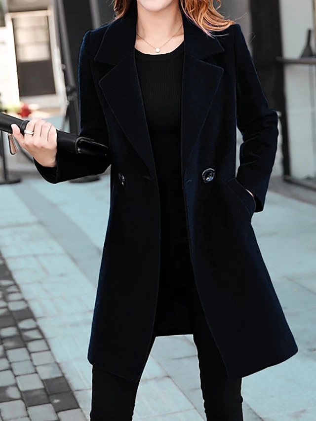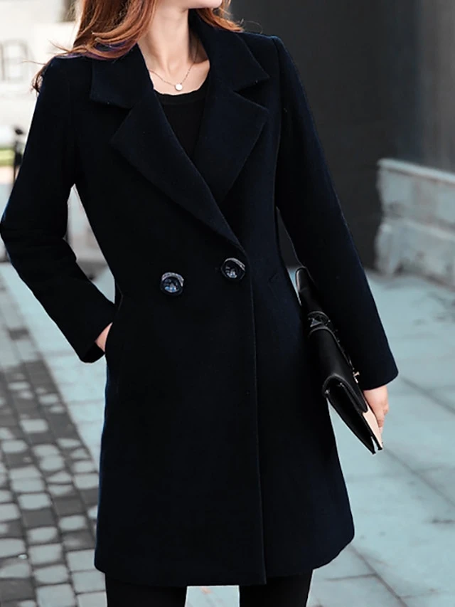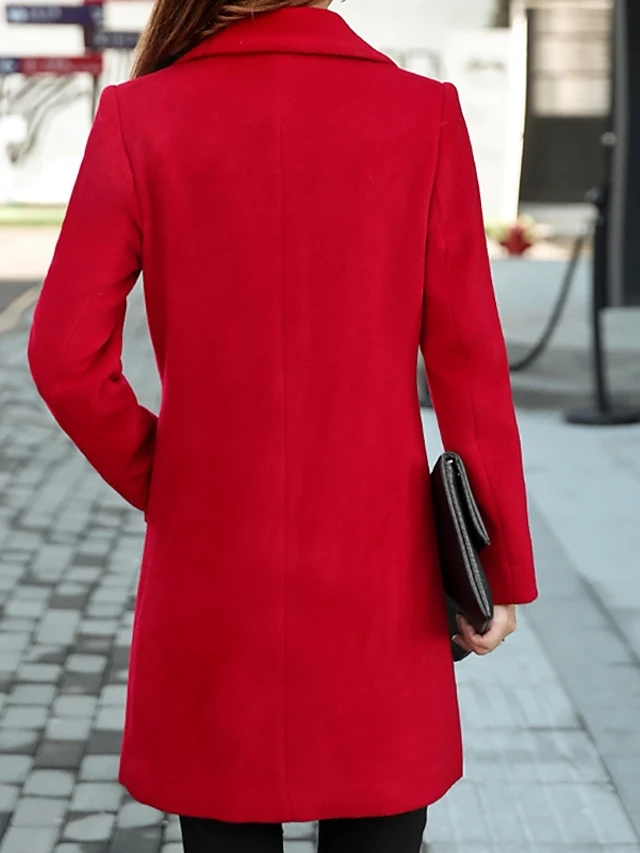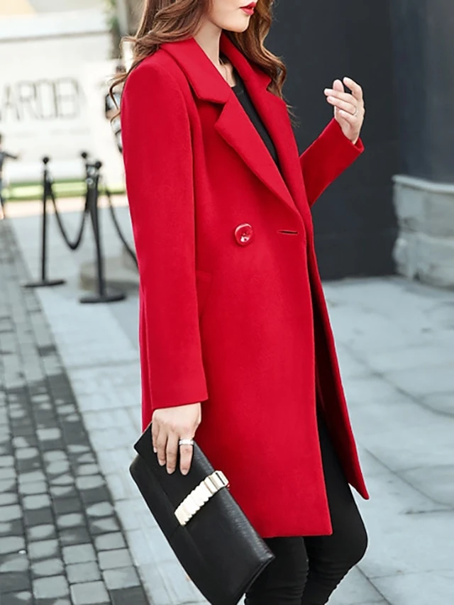 Women’s Winter Coat Long Overcoat Christmas Party Wear Double Breasted Lapel Pea Coat Fall Trench Coat Red