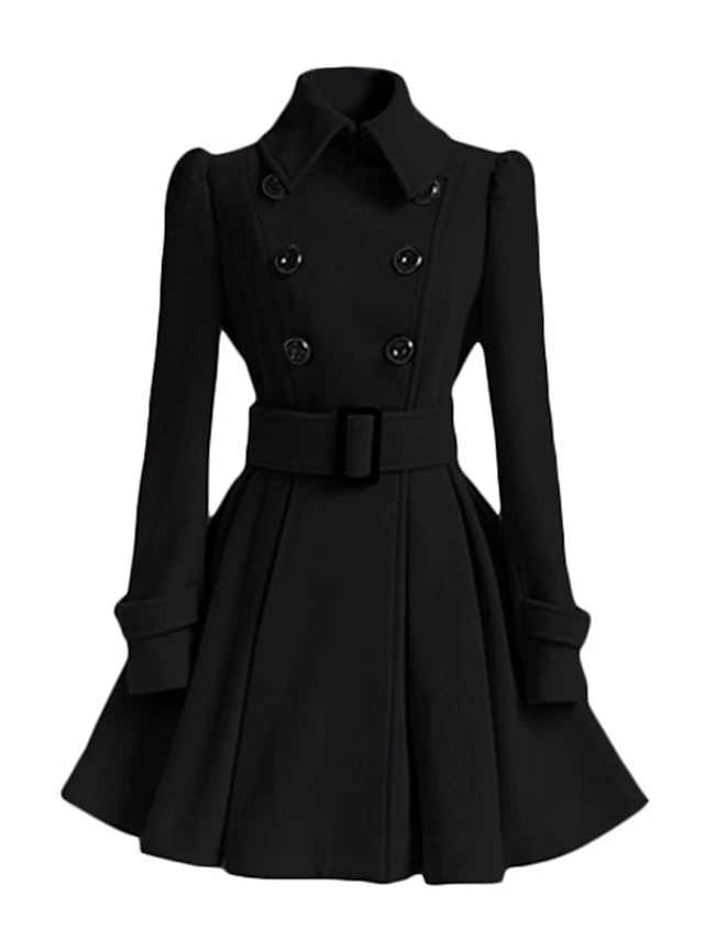 Women’s Winter Coat Long Overcoat With Belt Christmas Party Xmas Wear Dress Coat Warm Double Breasted Pea Coat Fall Trench Coat Red Black Khaki Elegant Outerwear Casual Jacket
