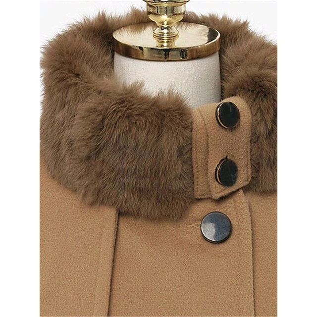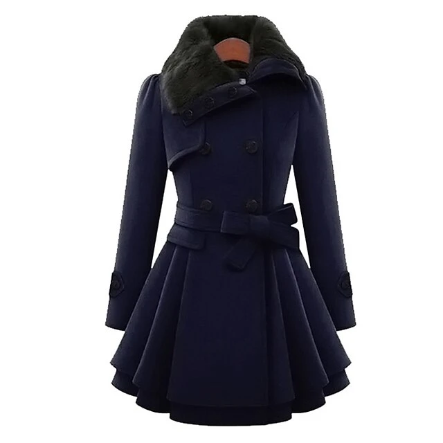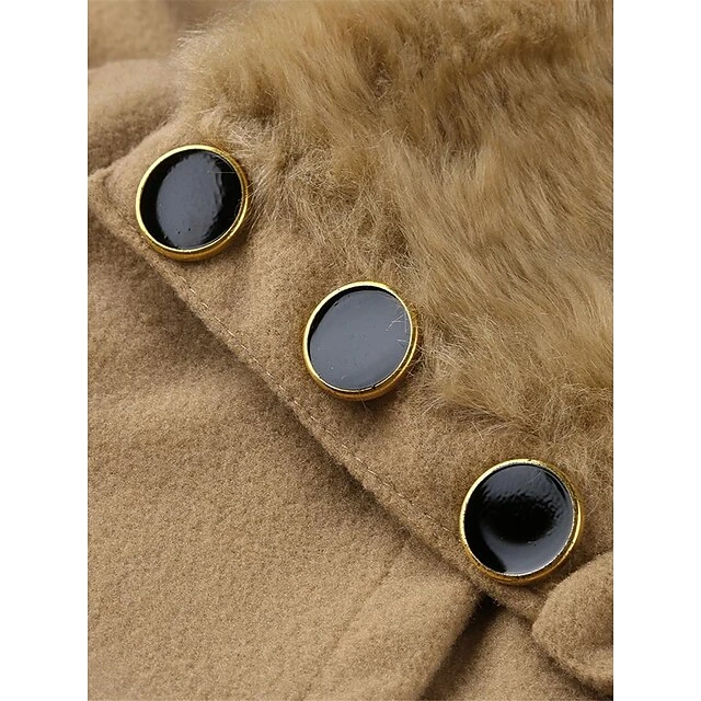 Women’s Winter Coat Long Overcoat With Belt Christmas Party Xmas Wear Warm Double Breasted Pea Coat With Fur Collar Fall Trench Coat Red Black Khaki Elegant Outerwear CasualJacket