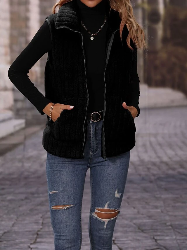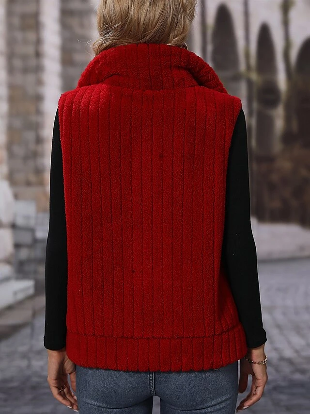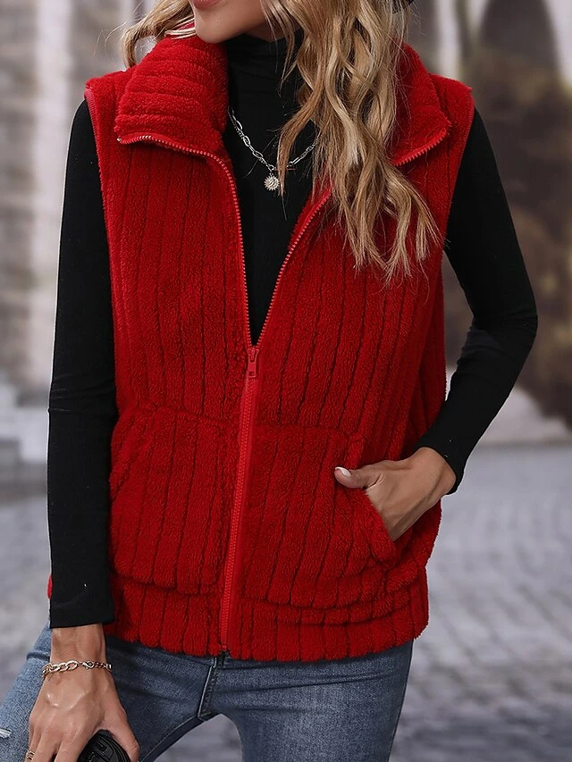 Women’s Winter Coat Sherpa Vest Fleece Sleeveless Teddy Coat Christmas Xmas Gilet Fall Thermal Warm Windproof Heated Jacket Zip Up Red Coat