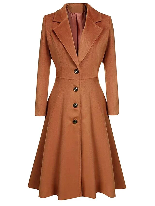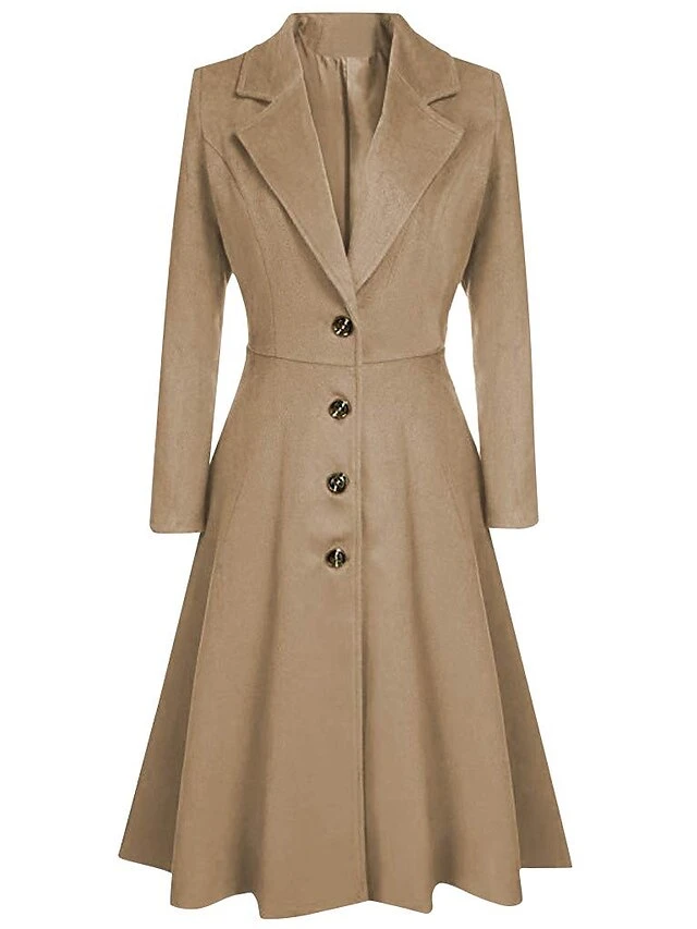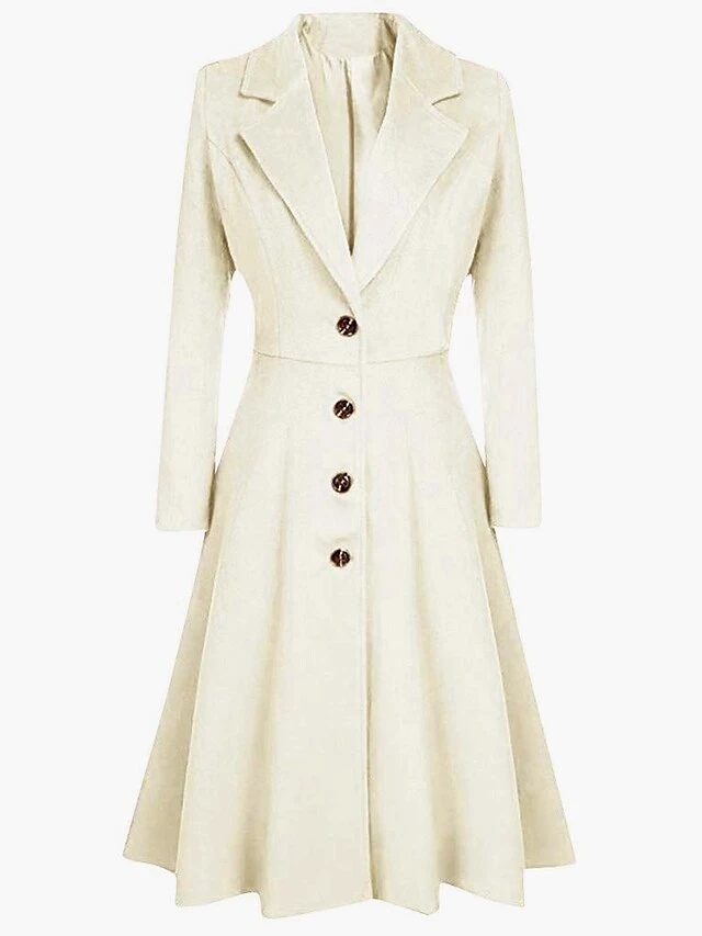 Women’s Wool Blend Coat Winter Long Pea Coat Christmas Party Fall Lapel Overcoat Slim Fit Elegant & Luxurious Dress Jacket Long Sleeve Vintage Style White Black Purple Red